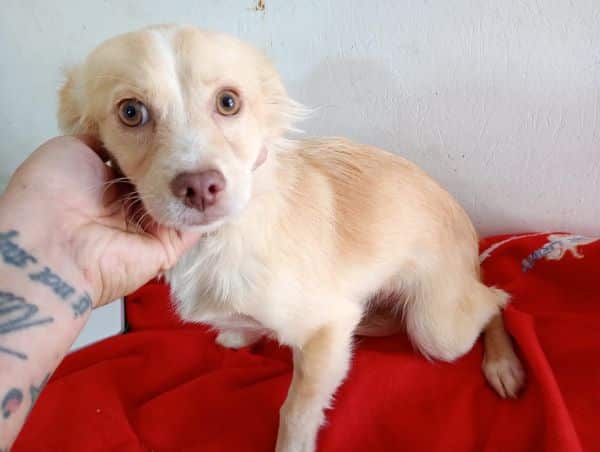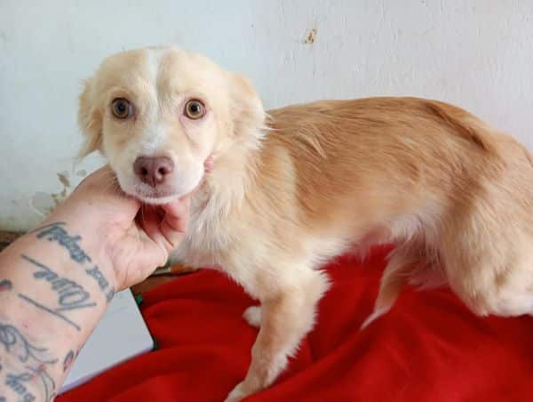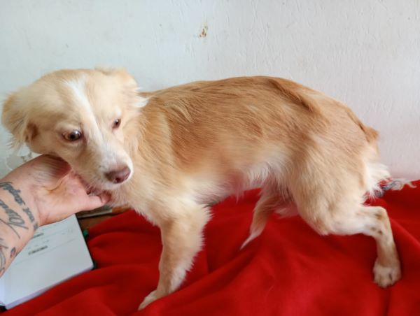 Diese kleine Hundedame ist noch etwas schüchtern und unsicher. Sie ist aber ganz lieb und man kann sie auch gut anfassen. Die hübsche Hündin sollte möglichst schnell ausreisen, damit sie nicht noch unsicherer wird.