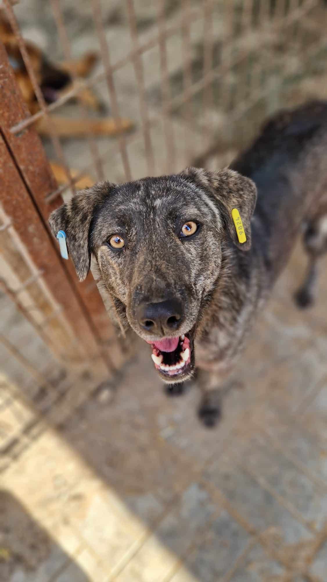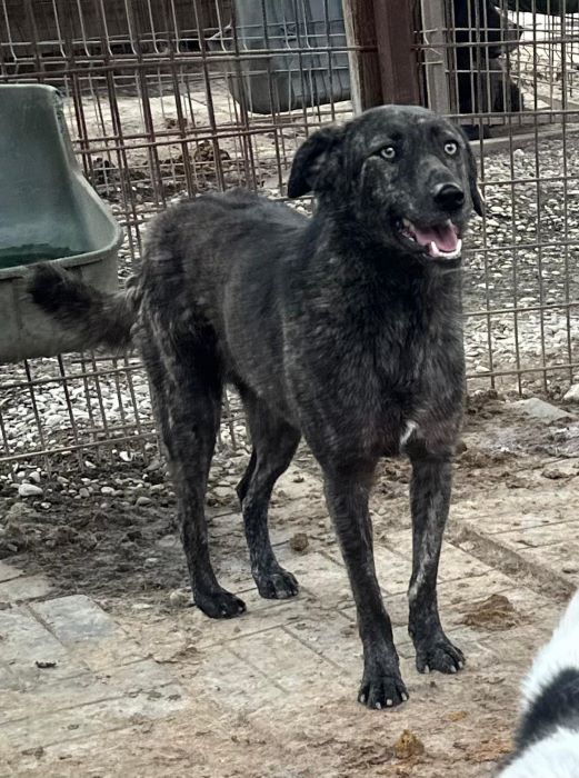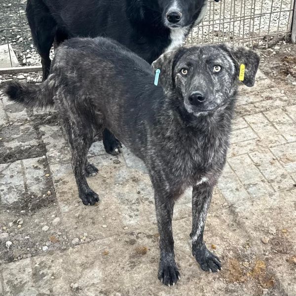 Die junge AISHA wurde leider erst fast 1 Jahr nach ihrer Ankunft in Bucov erfasst, bereits seit ca. Mai 2023 wartet sie hier auf ein besseres Leben. Auf unseren Besuch reagierte sie freundlich und sehr neugierig, nahm gerne unsere Leckerlis aus der Hand, wich aber zurück, wenn wir sie bedrängen wollten. Sie lässt sich beim Füttern zwar an der Schnauze berühren, aber wir konnten sie noch nicht streicheln. AISHA wirkte insgesamt ruhig und unaufgeregt, wir denken daher schon, dass wir mit mehr Zeit mehr Zugang zu ihr gefunden hätten. Mit den anderen Hunden unterschiedlichen Geschlechts in ihrem Kennel wirkte sie verträglich.