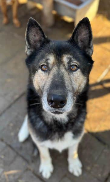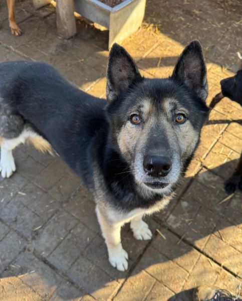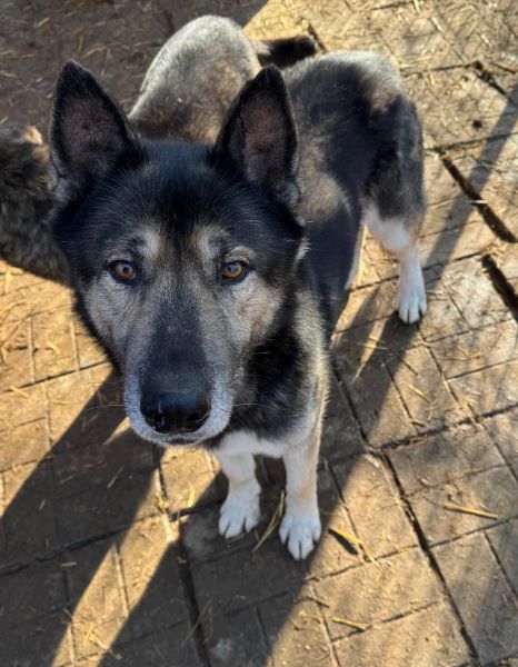 Als wir den Kennel betraten, schien dieser imposante schöne Rüde erst einmal kein Interesse an uns zu haben. Er lag entspannt in der Hütte – beobachtet uns jedoch sehr genau. Nach einer Zeit überlegte er sich anders und nahm selbständig Kontakt zu uns auf. Er nahm Leckercher aus der Hand und ließ sich überall anfassen. Wir merkten schnell, dass er mehr Interesse an unseren Leckerchen als an uns hatte. Aktuell lebt er mit vier weiteren Rüden zusammen und scheint dort verträglich – wäre aber sicher auch als Einzelprinz glücklich
