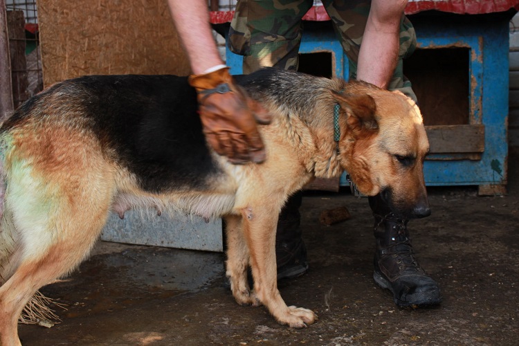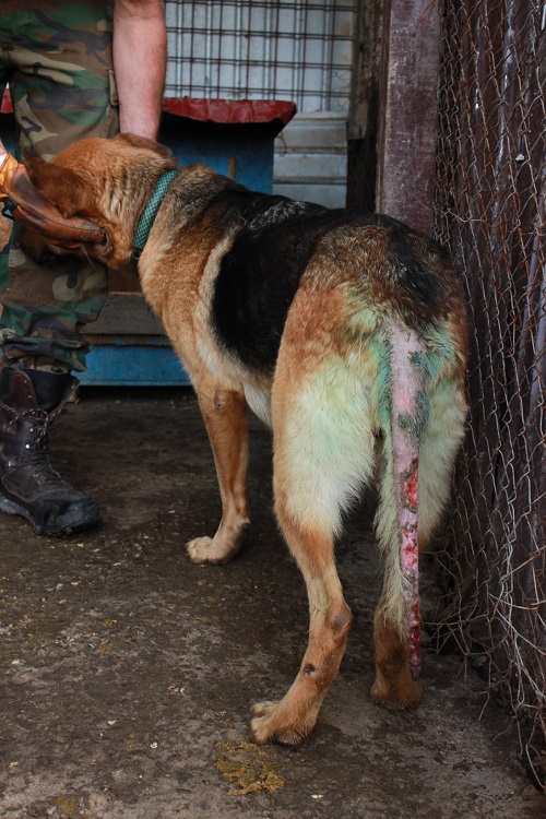 Schäfermama AJESHA versucht, ihre Welpen in Campina durchzubringen. Sie kam in einem wahrlich schlechten Zustand dort an. Viel zu dünn, die Rute kahl…