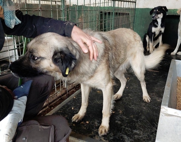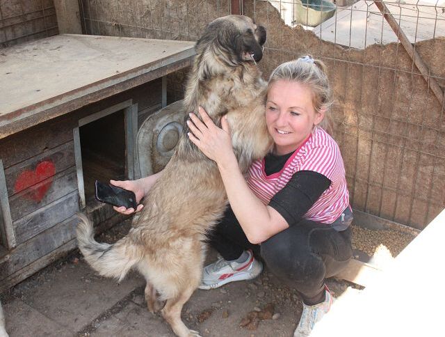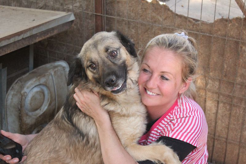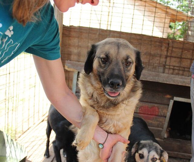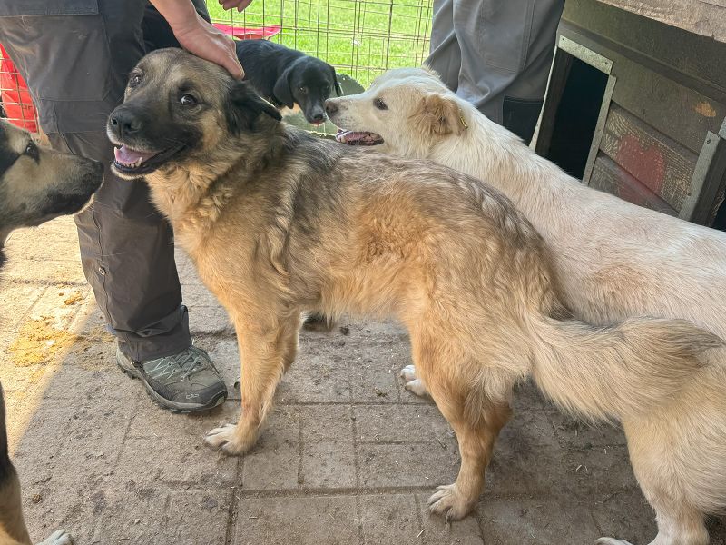AJUN ist in einen Außenkennel umgezogen und begrüßte uns bereits freudig an der Kenneltür. Er sprang an uns hoch und freute sich über unsere Streicheleinheiten, von denen er nicht genug bekommen konnte. Er ist ein freundlicher, offener und menschenbezogener Rüde, der sich gern und überall anfassen lässt. Ein richtiger Gute-Laune-Hund.
