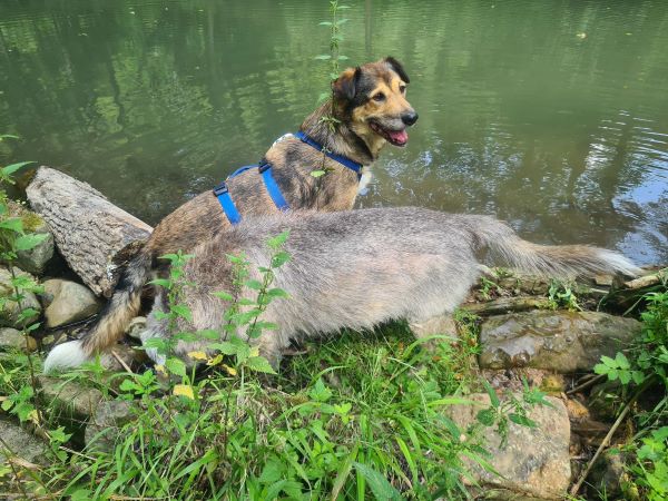 Akai ist sehr verträglich mit anderen Hunden und Katzen in seinem Zuhause. Er läuft ohne Probleme an der Leine. Er wünscht sich ebenerdig zu wohnen mit Garten am Dorfrand, da ihm viel Aktion noch Sorgen bereiten und er auch kein Typ ist für ein stressiges Stadtleben. Er genießt die Natur, setzt sich auch mal mit an die Bank und kann stundenlang alles beobachten was in den Wiesen und Wäldern vor ihm geschieht.