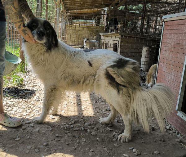 Sie begrüßte uns im Kennel, als wir diesen betraten. Dort sitzt sie zusammen mit einem Rüden, mit dem sie verträglich wirkt.