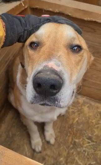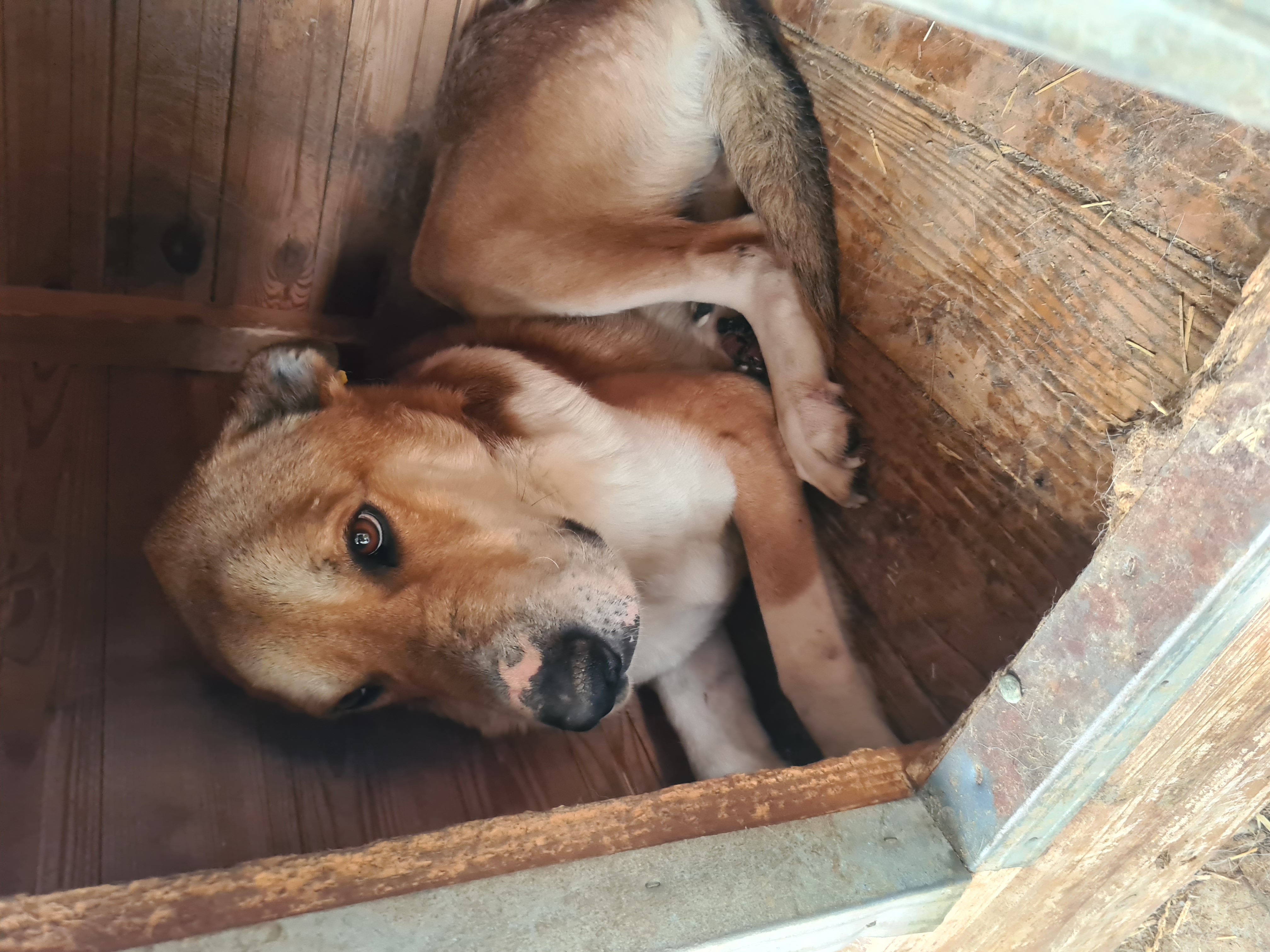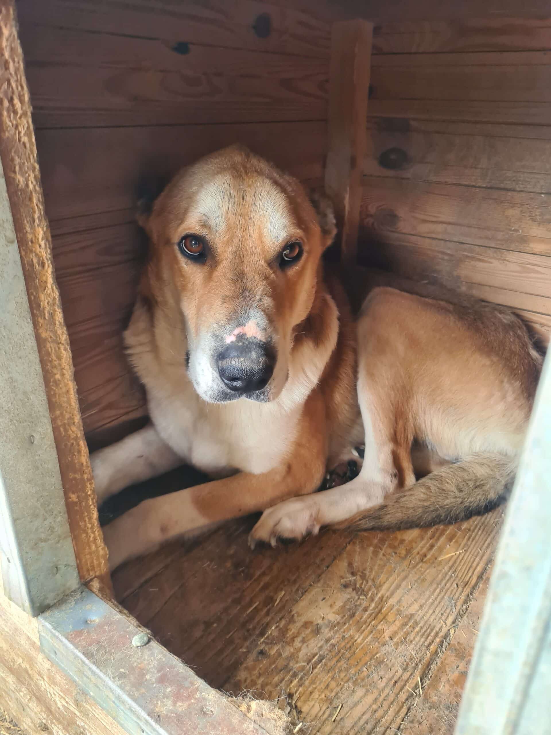 Rüde, kastriert geb. ca. 2021 Größe: ca. 60-65cm viel zu dünn (04/2023)