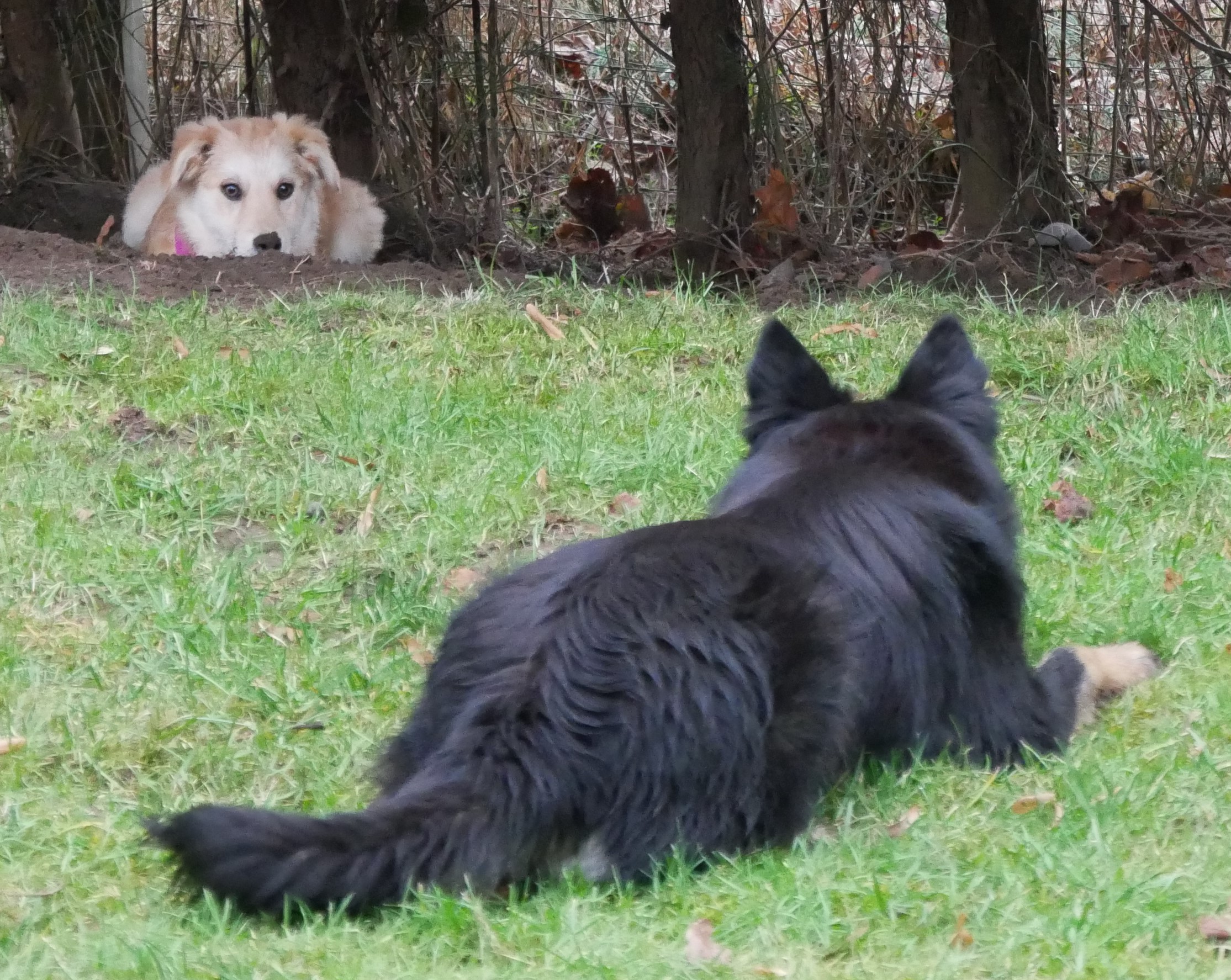 Sie ist nicht futterneidisch, man kann ihr gefahrlos Dinge wieder abnehmen. Sie scheint nicht sehr bellfreudig zu sein, der Nachbar darf sich in seinem Garten bewegen, ohne dass sie es kommentiert. Im Moment bellt sie nur zur Spielaufforderung; das jedoch ohne Garantie – kann sich auch noch ändern.