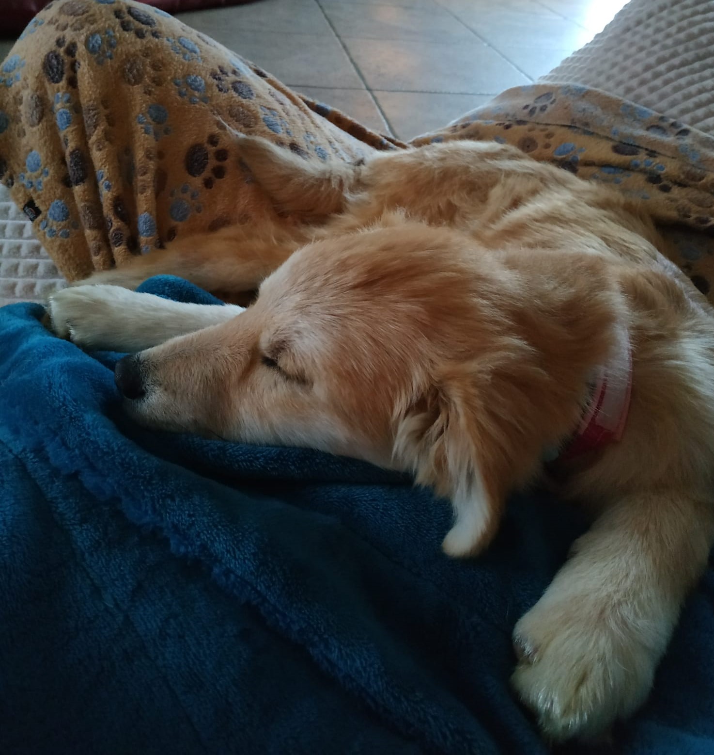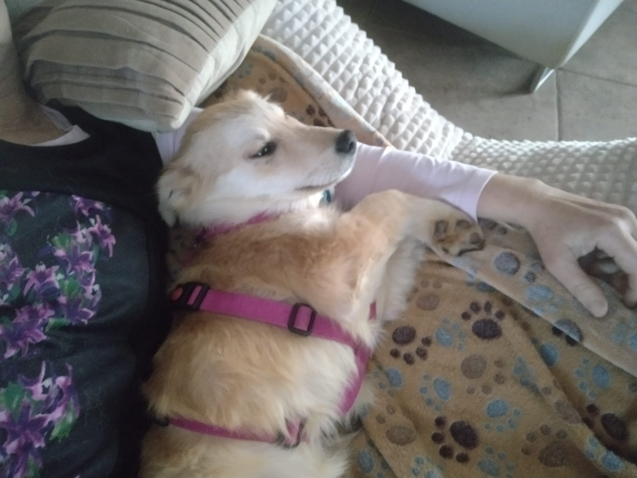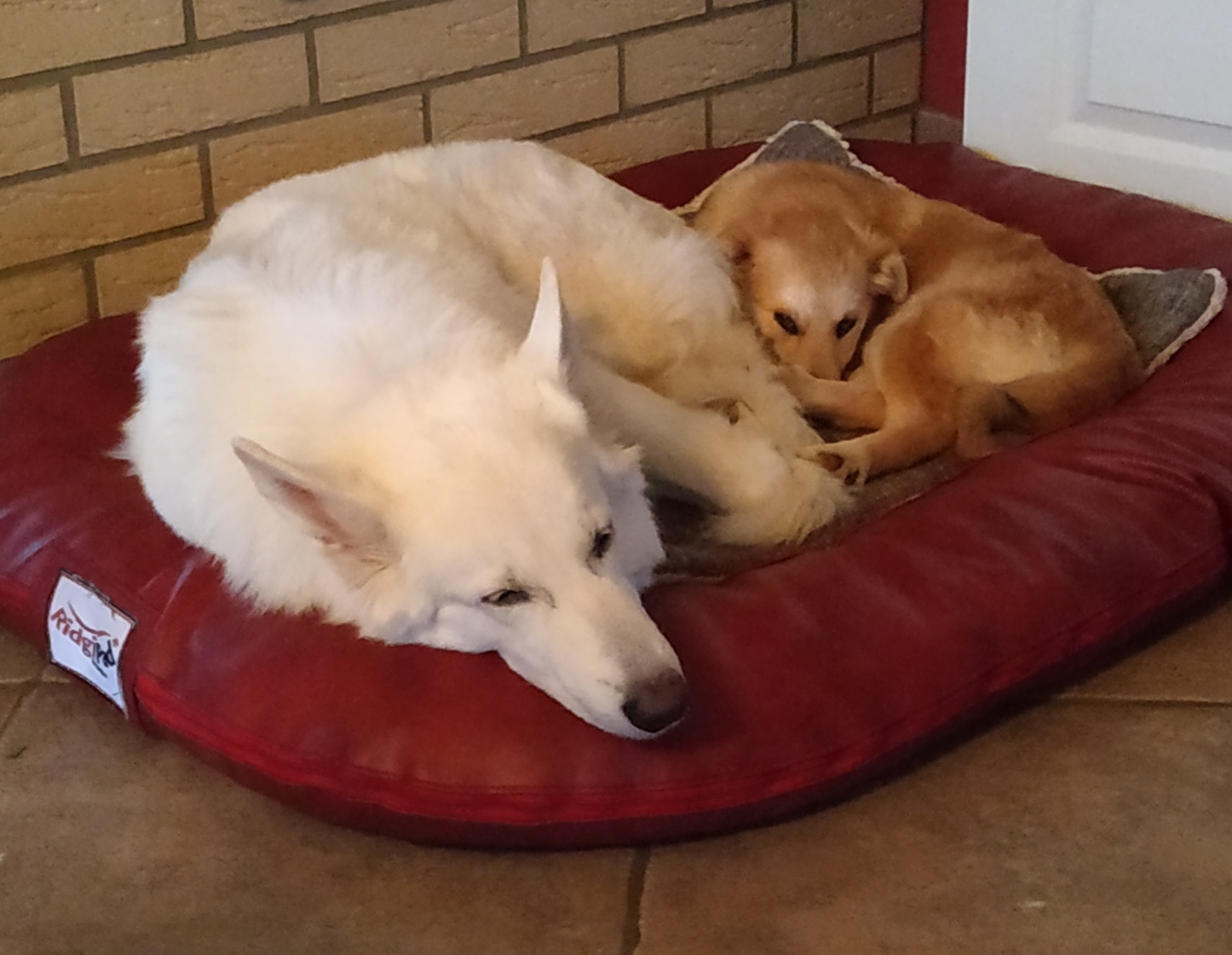 Ihre Pflegestellenmenschen liebt sie inzwischen sehr. Das abendliche Kuscheln auf dem Kronenkissen beim lesen oder fernsehen ist auch für Akira ein liebgewonnenes Ritual. Hier kann sie entspannen, sie döst im Arm oder an der Seite ihres Menschen und genießt die Ruhe, die Wärme, die Sicherheit.