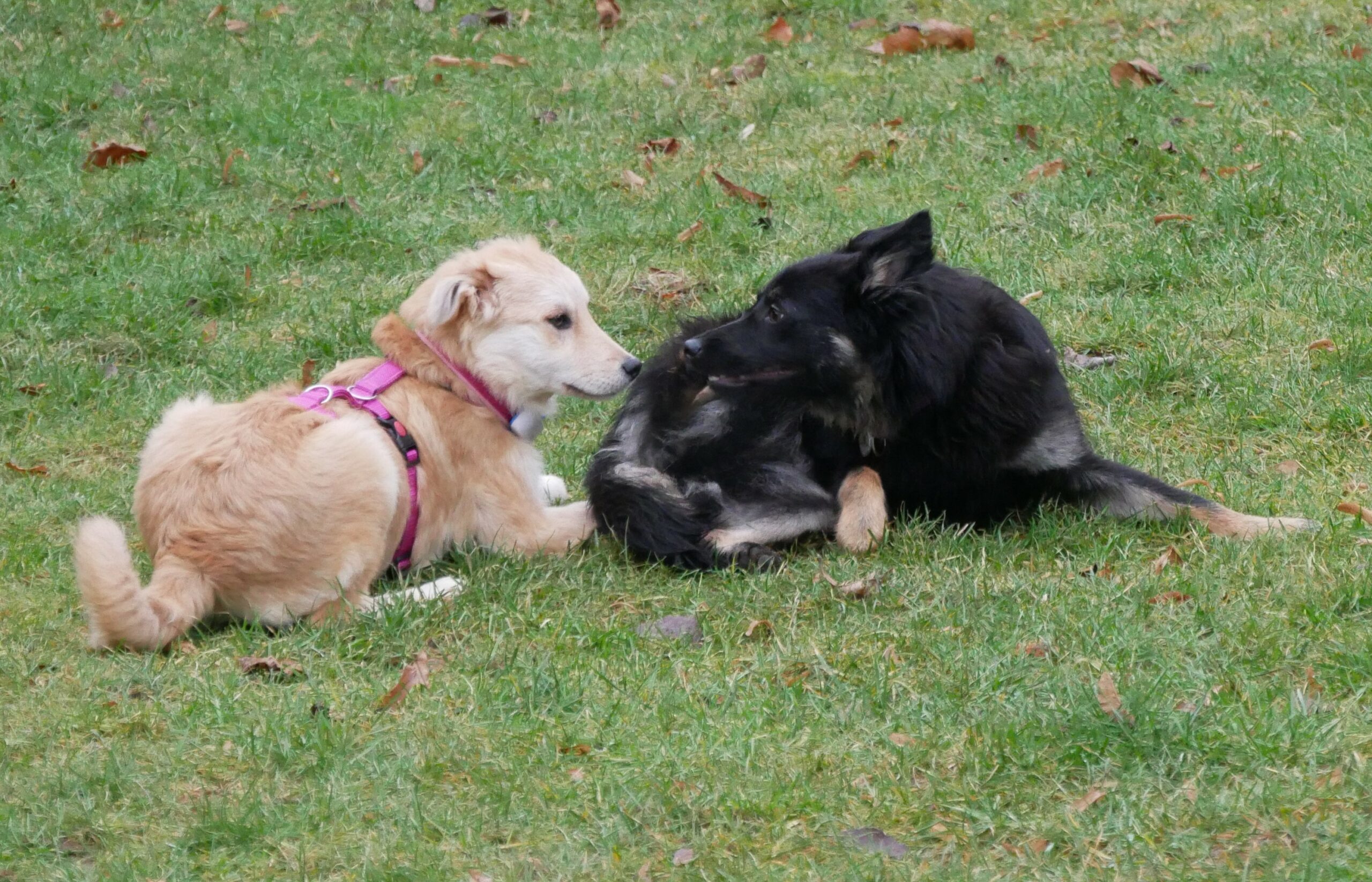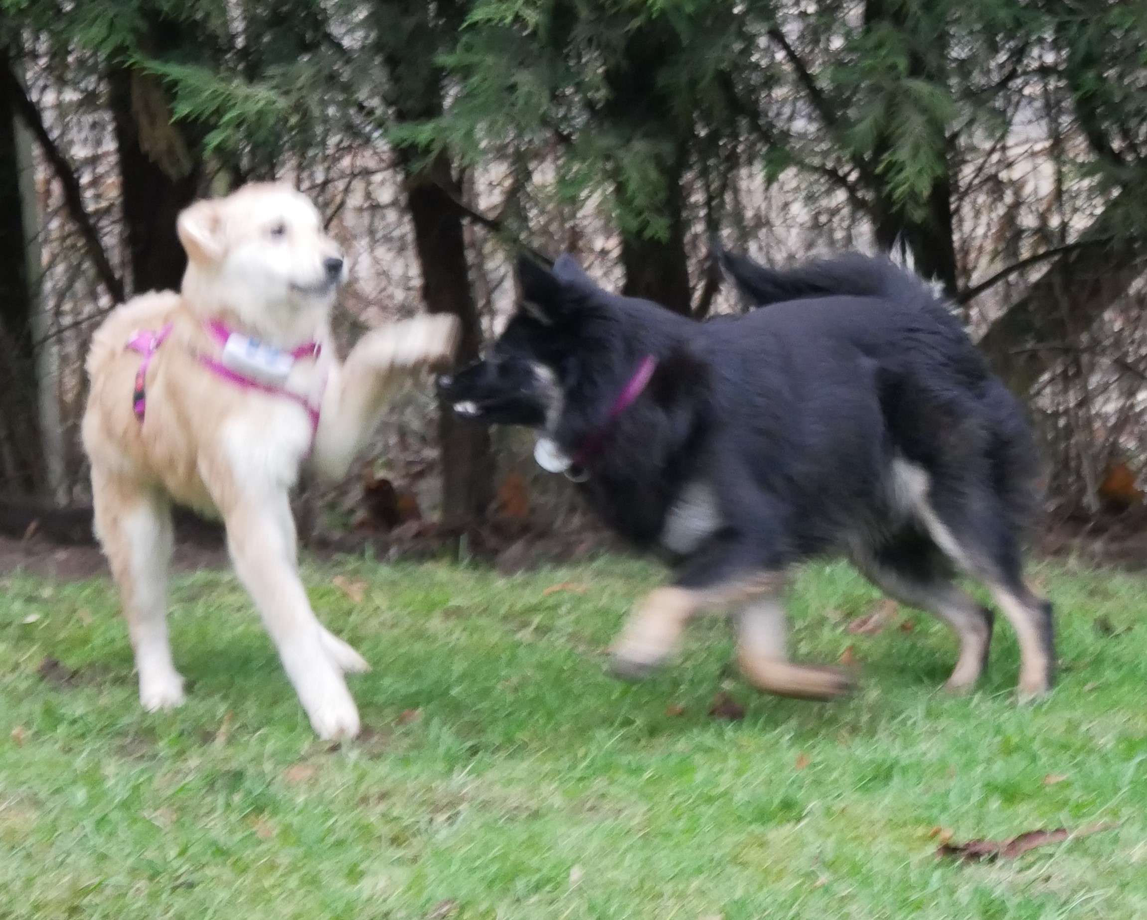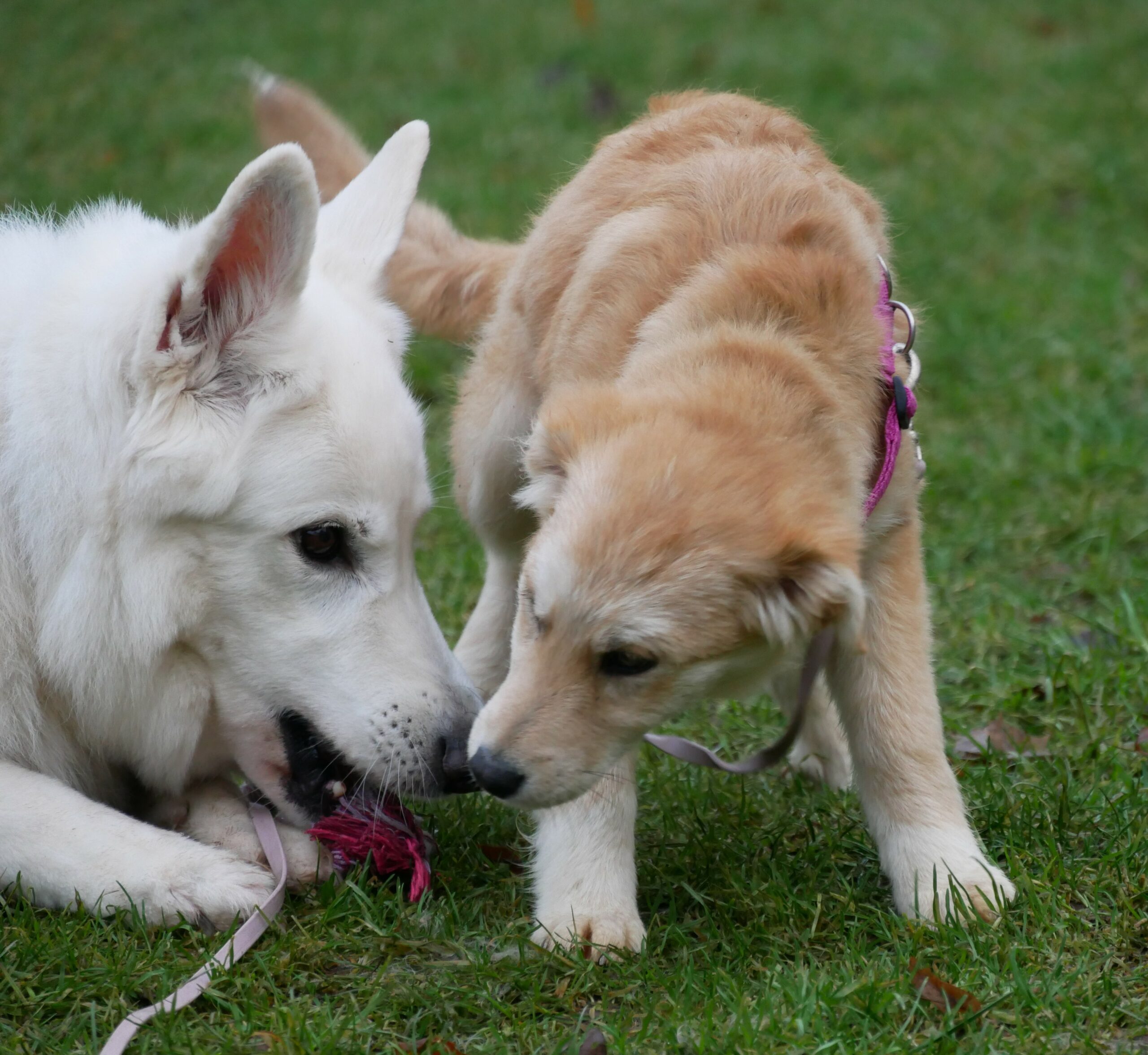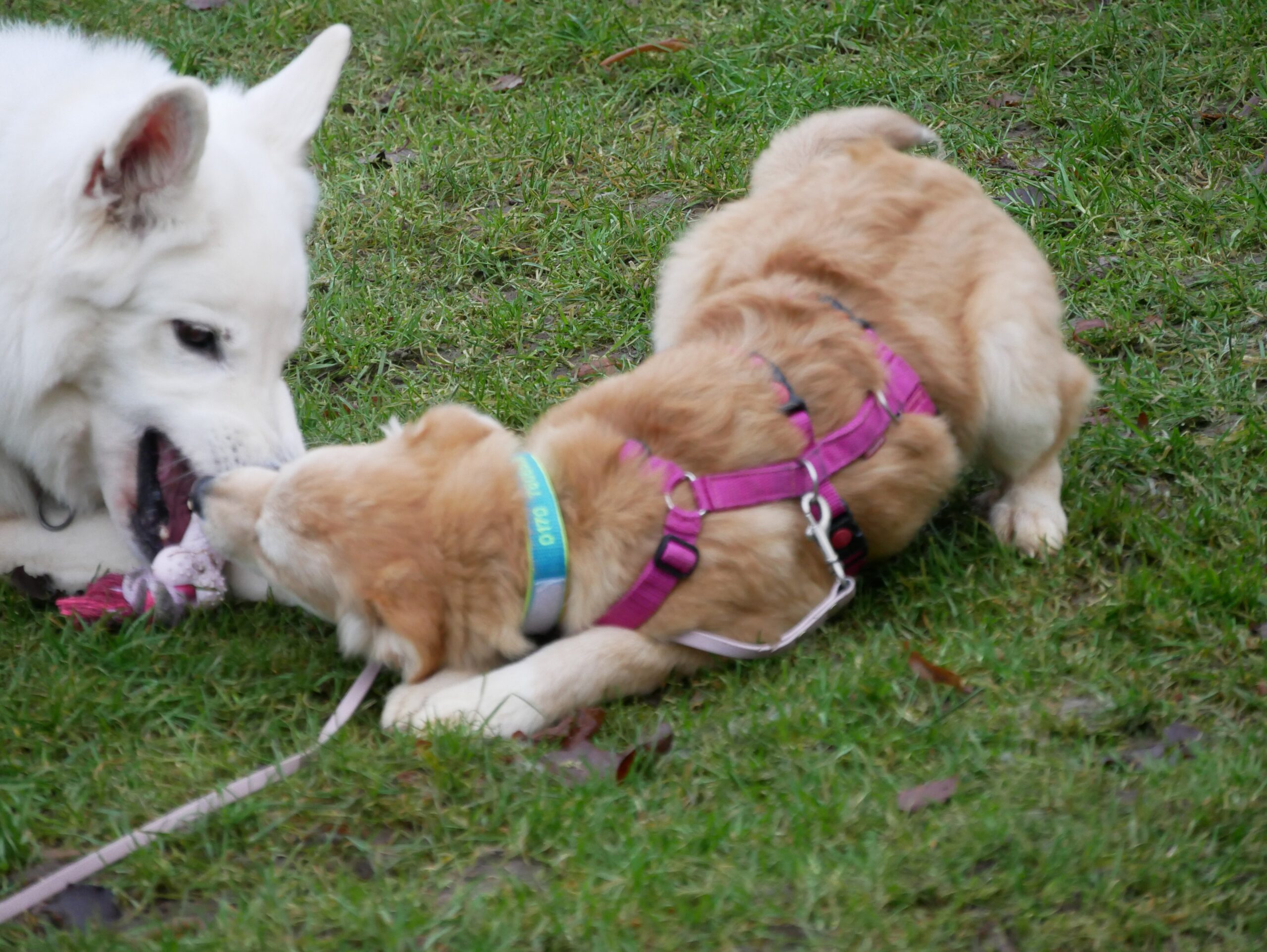An der kurzen Leine laufen muss noch geübt werden; diese Zwangsnähe lässt sie manchmal noch erstarren, dann mag sie nicht weitergehen. Kommt es zu so einer Situation, hilft ihr warten und lockern der Leine und natürlich die anderen Hunde.