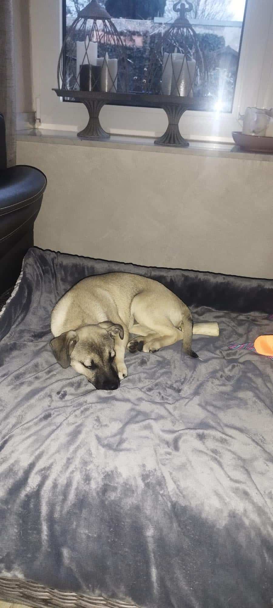 Ursprünglich komme ich aus Rumänien und lebe jetzt auf einer Pflegestelle in Würselen mit anderen Hunden, einer Katze und meiner Schwester Deenah harmonisch zusammen.