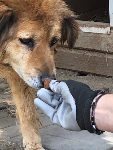 Wesen & Zutraulichkeit (Character & Trustworthiness) | neugierig (curious), nimmt Leckerchen (takes goodies), benötigt Eingewöhnungszeit (takes time to settle in), unsicher (insecure) |