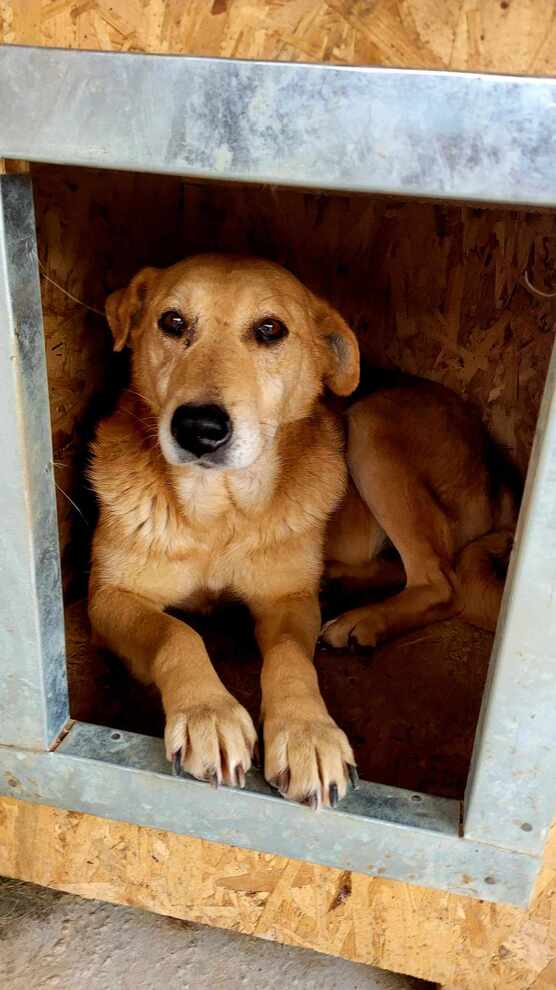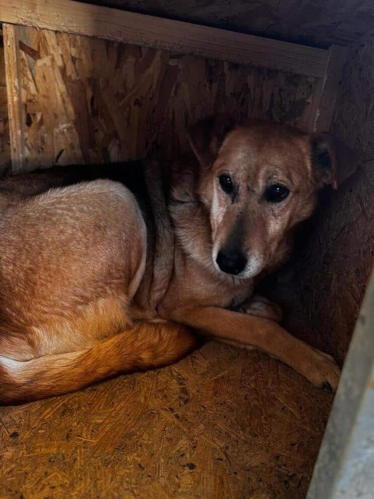 Update 03/24: Die ältere Hundedame Alara versucht etwas Ruhe zu finden und zieht sich bei dem Trubel in ihrem Kennel lieber in eine Hütte zurück. Alara versprüht viel rauen Charme, sie ist anfassbar und nimmt Leckerchen. Für Alara wäre es ein wirklicher Segen, wenn sie einmal ein kuschliges Körbchen spüren und ein sorgenfreies Hundeleben in einem sicheren Zuhause leben dürfte.