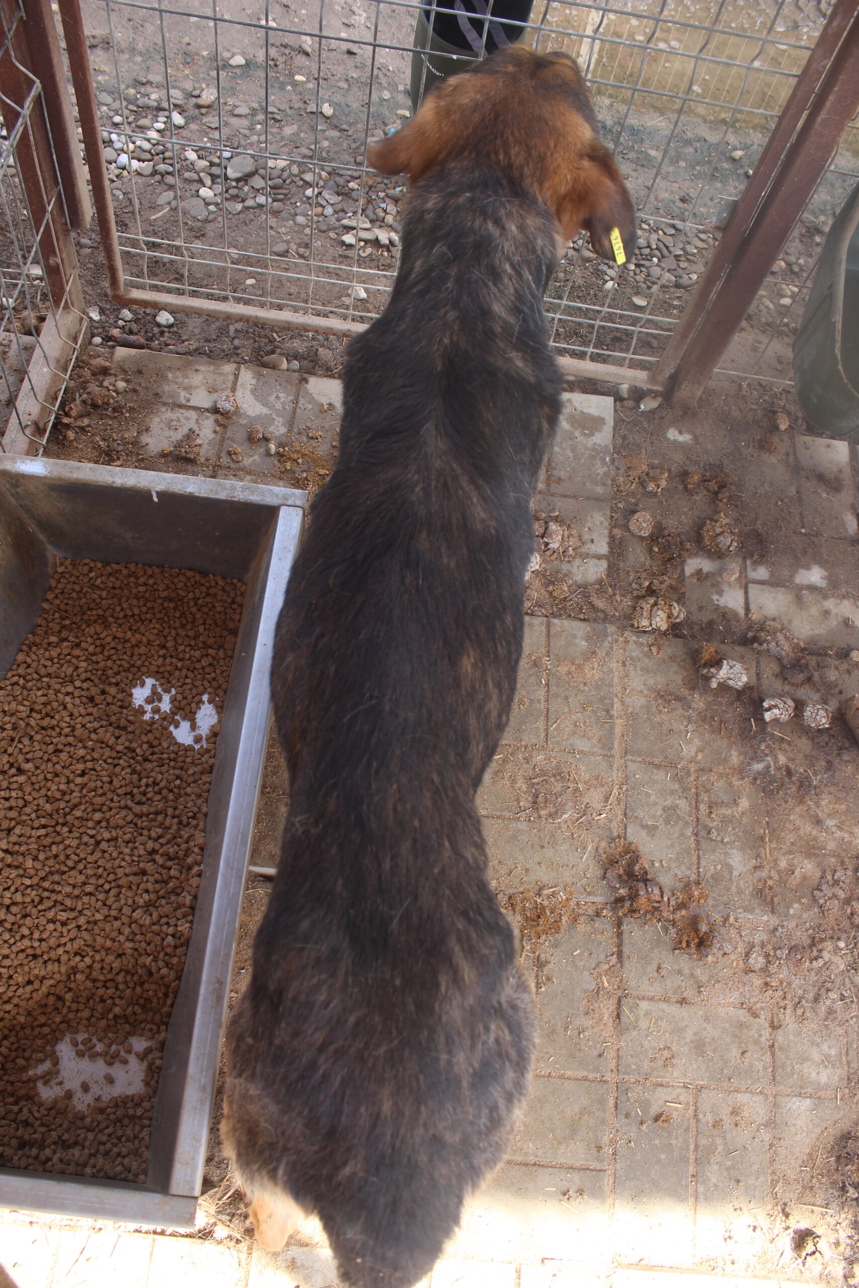ALBERT ist ein sehr menschenbezogener, ruhiger Rüde. Er sah uns erst ganz rührend durch sein Kennelgitter an und ließ sich dann gerne von uns streicheln und kraulen – dazu legte er sich sogar auf den Rücken. Leider ist er aktuell viel zu dünn. Auch schont er seine rechte Vorderpfote, vermutlich wegen einer Verletzung, und sein Gangbild wirkt unrund – evtl. hat er bereits Hüftprobleme.
