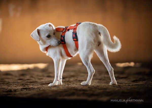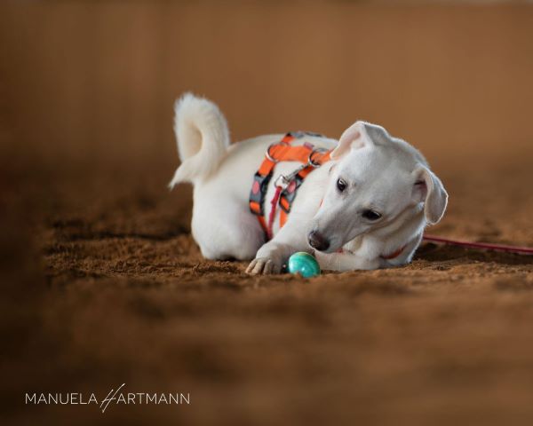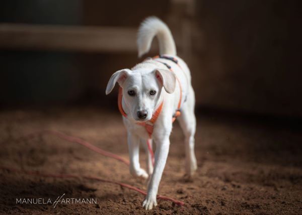 Sie ist verspielt und im täglichen Leben sehr unkompliziert. Das laufen an der Leine hat sie schnell gelernt, so dass sie täglich mit in den Pferdestall zur Arbeit kommt.