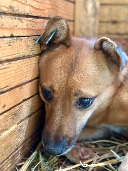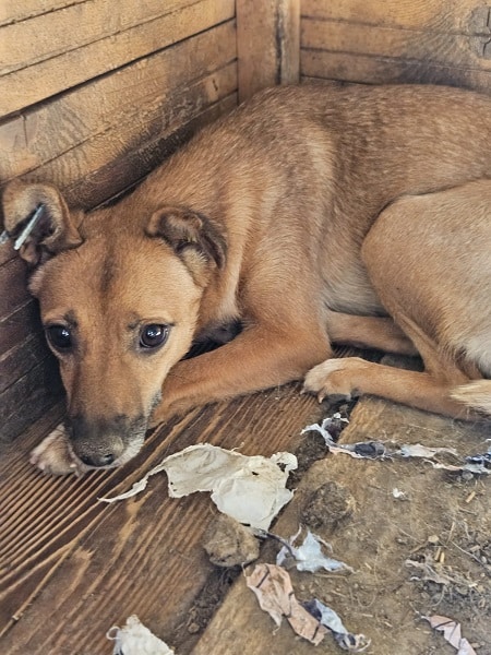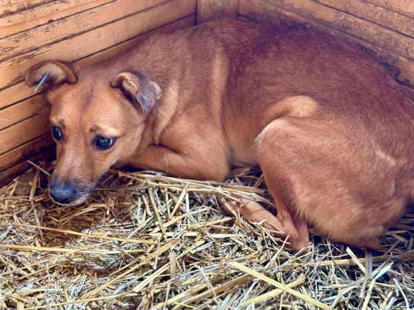Diese kleinere Hündin verkroch sich in der Hütte und hätte sich so gerne unsichtbar gemacht. Leider ging das nicht, denn sonst hätte sie keine Chance das Shelter noch mal lebend zu verlassen. Auf Bedrängung reagierte sie mit halbherzigen Abschnappverhalten und schrie auch vor Angst. Hier sind Menschen mit ausreichend Erfahrung gefragt. Sie wird aus ihrem Schneckenhaus befreit werden können, wenn man weiß wie. Sicherheit und Führung geben und mit ihr den Weg gehen und sie nicht im Schneckenhaus lassen. Sie ist verträglich.