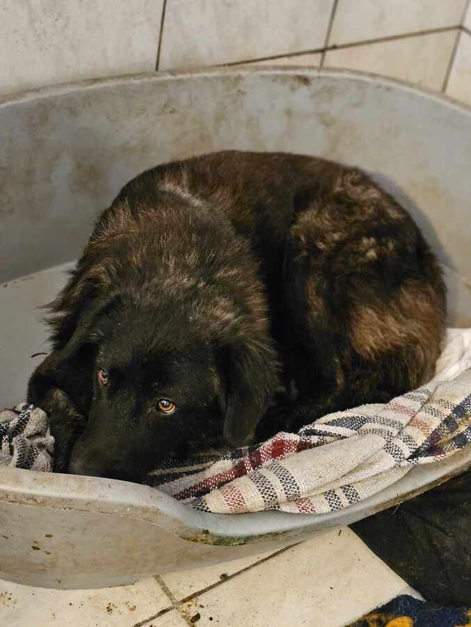 ALEXEJ wurde in einer Klinik behandelt und hat sich tapfer einer Beinamputation unterzogen. Er ist ein Kämpfer und muss nun den Shelteralltag auf drei Beinen meistern.