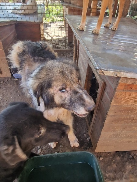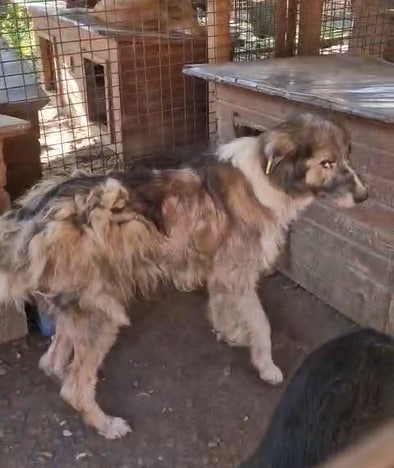 ALFONS sieht erschreckend aus. Das, was von seinem Fell noch übrig ist, ist komplett verfilzt. Sein Körper ist gezeichnet von starken Hautproblemen, die Augen sind entzündet und er ist zu dünn. Nach mindestend 1,5 Jahren im Shelter wirkt er resigniert, er hat in seinem kleinen Kennel auch nichts mehr zu erwarten. Wir suchen dringend einen Platz für den alten Rüden, damit er seine Rentnerzeit noch unter würdigen Umständen verbringen kann.