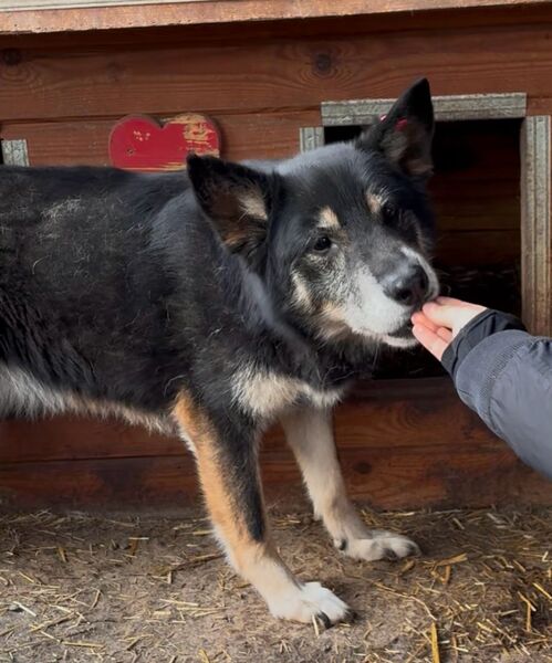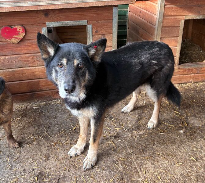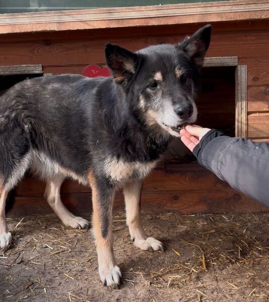Unsere ALIKA hofft bereits seit 4 langen Jahren im Shelter auf ihr Glück und musste dort alt werden. 4 lange Jahre hat niemand nach ihr gefragt, doch sie hat sich irgendwie durchgeschlagen. Bei unserem Besuch zeigte sich die hübsche, mittlerweile sichtlich ältere Dame sehr neugierig. Kam zu viel Dynamik in der Gruppe auf, maßregelte ALIKA die jüngeren Hunde, um dem Gewusel ein Ende zu setzen. Man merkt ihr an, dass sie sich nach Ruhe und Geborgenheit sehnt… Gern nahm sie die Leckerlie aus unseren Händen, wich weiteren Annäherungsversuchen im offenen Kennel jedoch aus. In der Hütte konnten wir sie schließlich behutsam streicheln, doch genießen konnte sie diese Zuwendung nicht so recht. ALIKA ist diese intensive Nähe nach all der Zeit in Isolation einfach nicht gewohnt. Wir wünschen ihr, dass sie in einer stressfreien Umgebung bei erfahrenen und einfühlsamen Menschen ankommen darf, um einen würdigen Lebensabend auf der Sonnenseite verbringen zu können. Von einem ruhigen und netten Ersthund an ihrer Seite würde sie sicher profitieren.