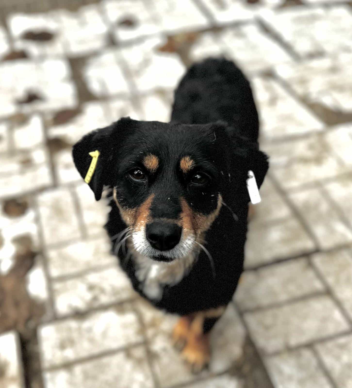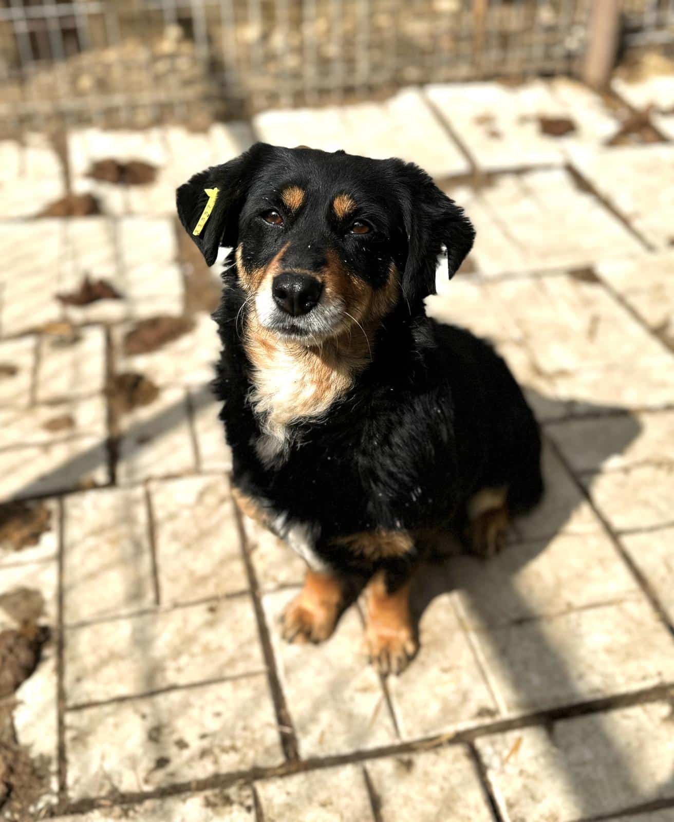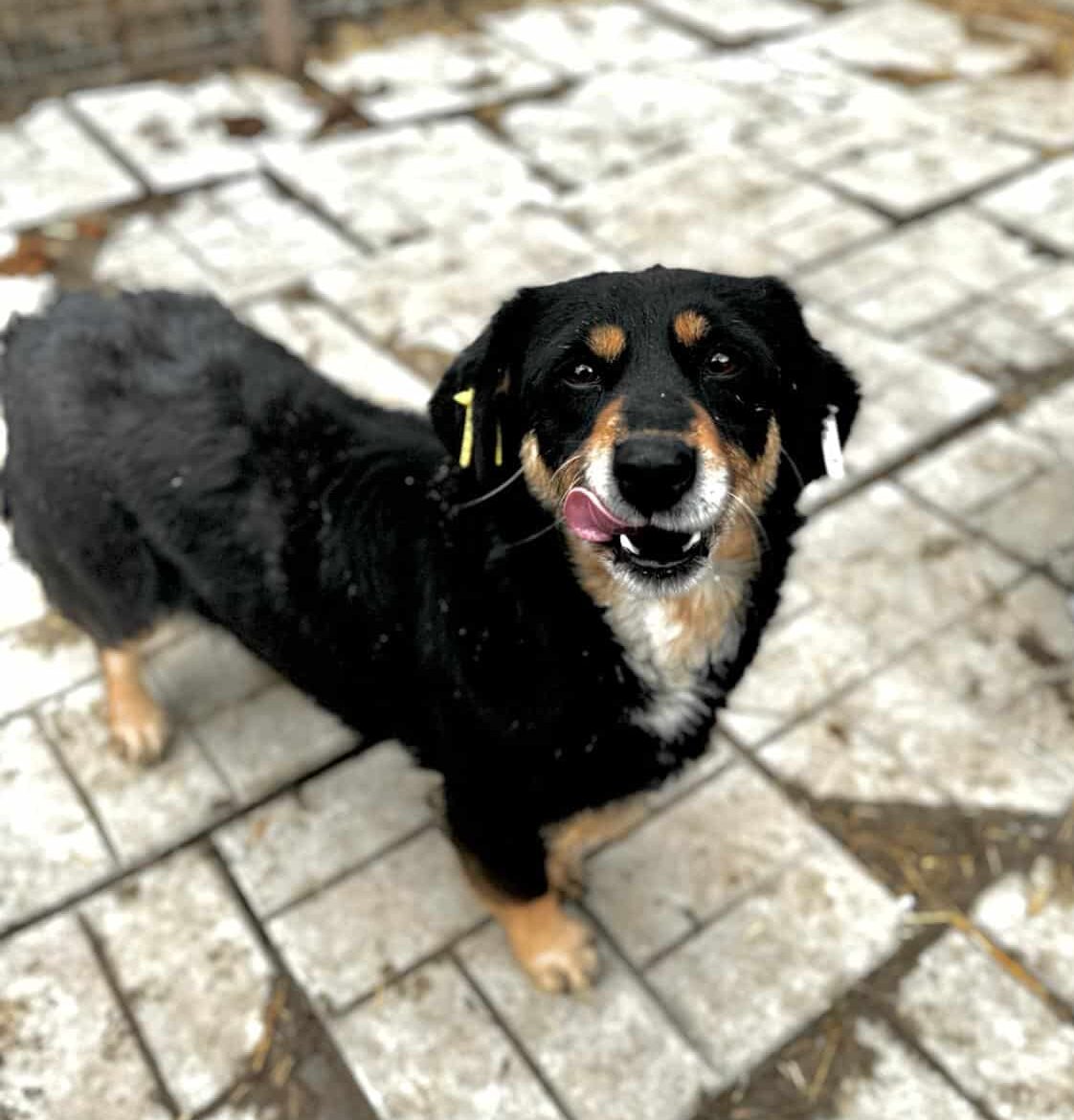 Sie freute sich schon, als wir den Kennel betraten. Leider ist in ihrem Kennel ein sehr präsenter Rüde, der die anderen Hunde immer wieder wegschickte. Doch ALIKI ließ dies unbeeindruckt, sie war ständig in unserer Nähe und war sehr froh, als sie an der Reihe war. Sie genoss die Streicheleinheiten sehr und krabbelte regelrecht in uns hinein. Wir konnten sie sogar auf den Arm nehmen Sie lebt aktuell in einem großen gemischten Rudel und kommt mit allen gut klar.