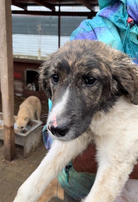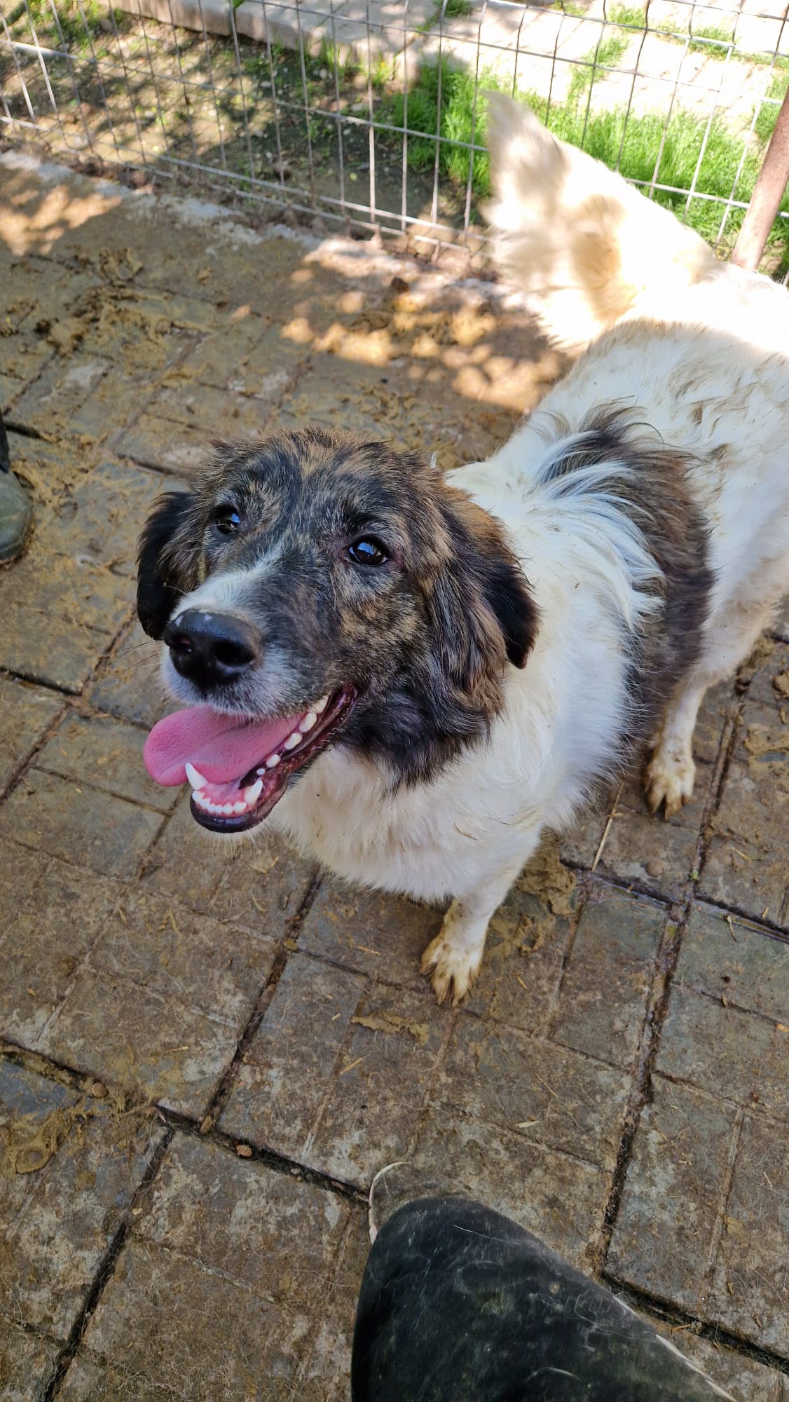 Diese junge Hündin hat uns gleich freudig begrüßt. Wir konnten sie problemlos überall anfassen. Sie ist junghundtypisch verspielt, neugierig und aufgeschlossen. Sie begleitete uns bei der Erfassung im Kennel und suchte aktiv unseren Kontakt.