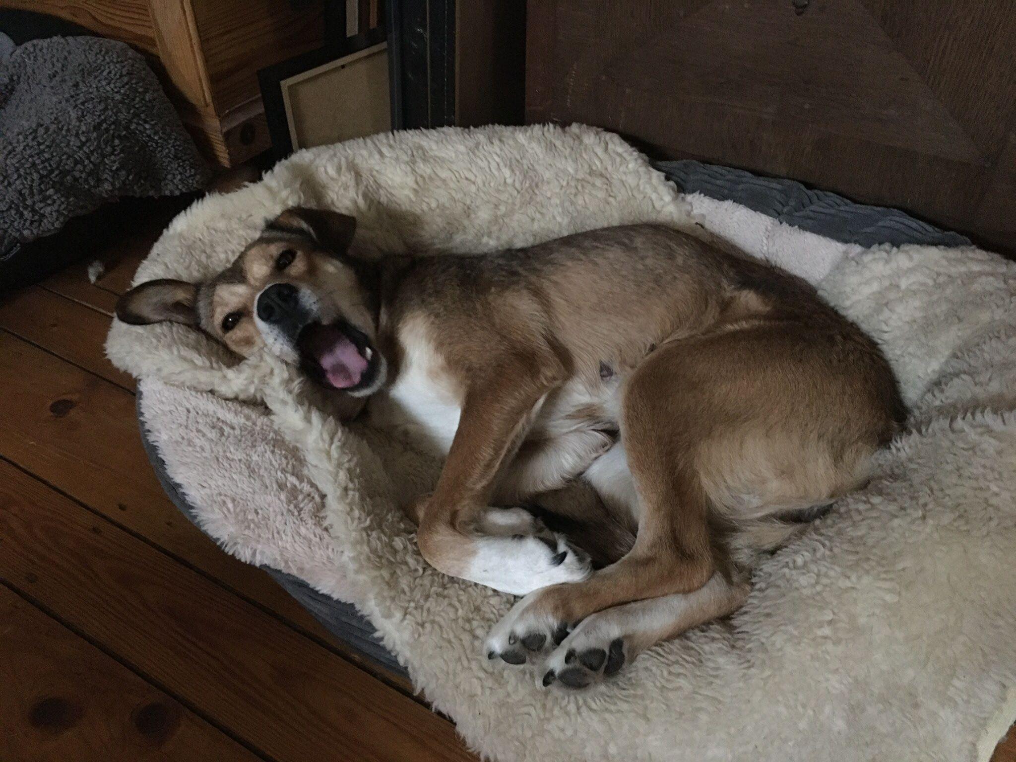 Almina hat sich auf ihrer Pflegestelle toll eingelebt. Sie ist ein richtiger Traumhund – lieb, sozial, freundlich zu Mensch und Tier. Sie war von Beginn an stubenrein, läuft vorbildlich an der Leine, ist sehr ruhig im Haus, geht freundlich auf Besuch zu, kann bereits 2-3 Stunden im Rudel und auch ganz alleine bleiben.