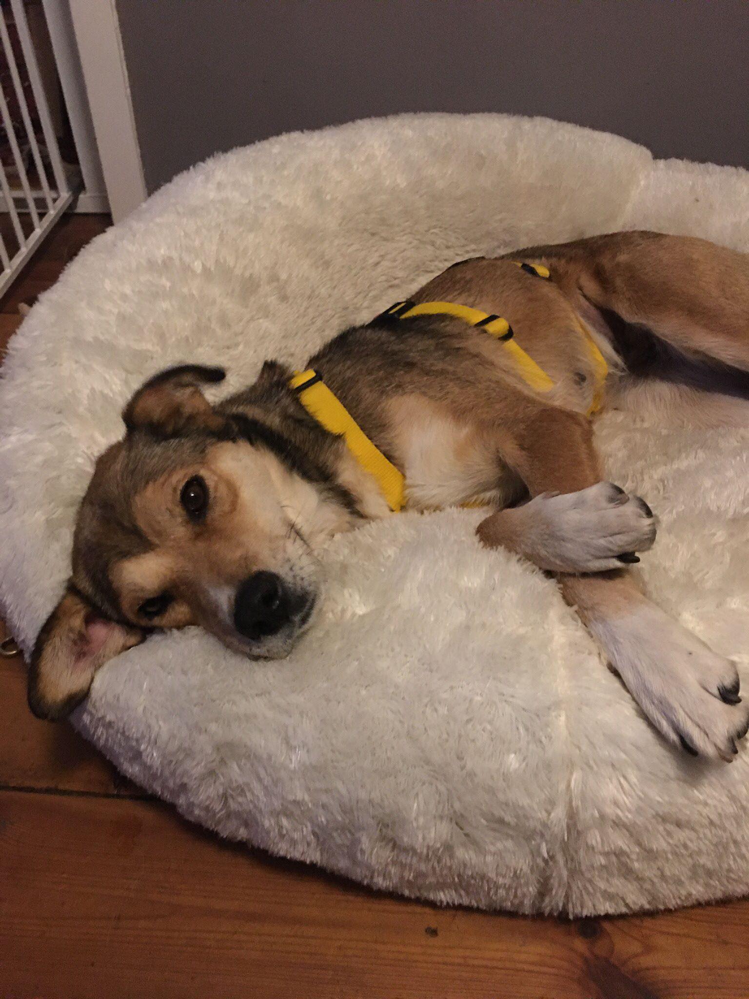 Nur Autofahren findet sie noch richtig blöd, das wird mit ihr derzeit geübt, lange Autofahrten sollten ihr jedoch am Anfang noch nicht regelmäßig zugemutet werden.
