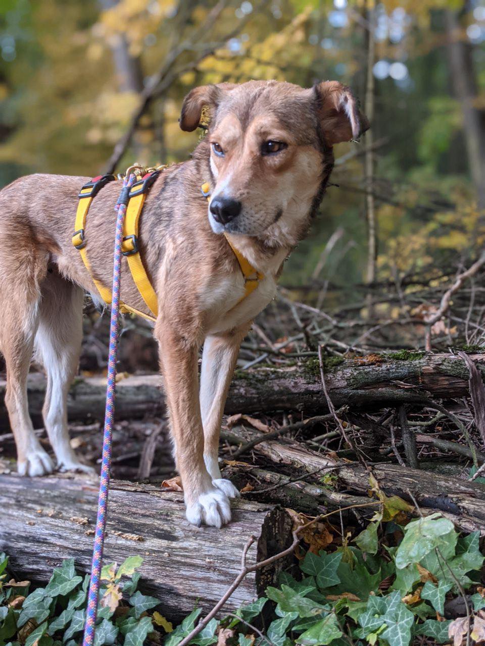 Almina ist ein bewegungsfreudiger Hund, sie liebt ausgedehnte Spaziergänge aber auch die Ruhezeiten danach. Mit ein bisschen Training wird sie eine großartige Begleitung beim Wandern oder Joggen. Zu Menschen ist Almina sehr freundlich, sie sucht gerne die Nähe und freut sich über jede Aufmerksamkeit.