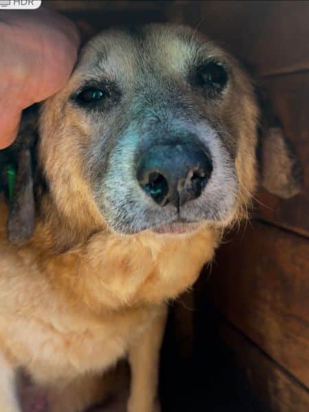 Sein Blick erzählt Geschichten, aber er schweigt. Er wartet. Auf jemanden, der ihn sieht. Nicht den Hund, der nichts mehr fordert – sondern das Wesen, das so viel gegeben hat und jetzt endlich einfach ankommen will.