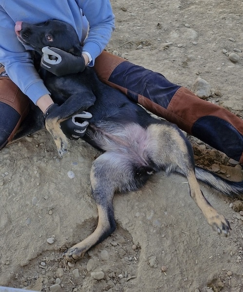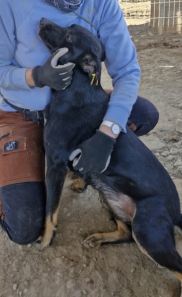 ALORA fiel uns direkt auf, da sie viel zu dünn ist. Nachdem wir den Kennel betreten haben, fraß sie erstmal ausgiebig von dem vorhandenen Futter. In ihrem Kennel lebt sie mit einem gemischten Rudel. Leider sind dort alle Hunde recht dünn, wir konnten in der kurzen Zeit keinen Grund dafür ausmachen. Als sie sich einmal satt gefressen hatte, war schmusen für sie das GRÖSSTE. Freudig legte sie ihren Kopf in den Schoß der Volontärin und wollte am liebsten darin versinken. ALORA kletterte auf ihren Schoß und war so glücklich über die Aufmerksamkeit, die sie schon so lange entbehren muss.