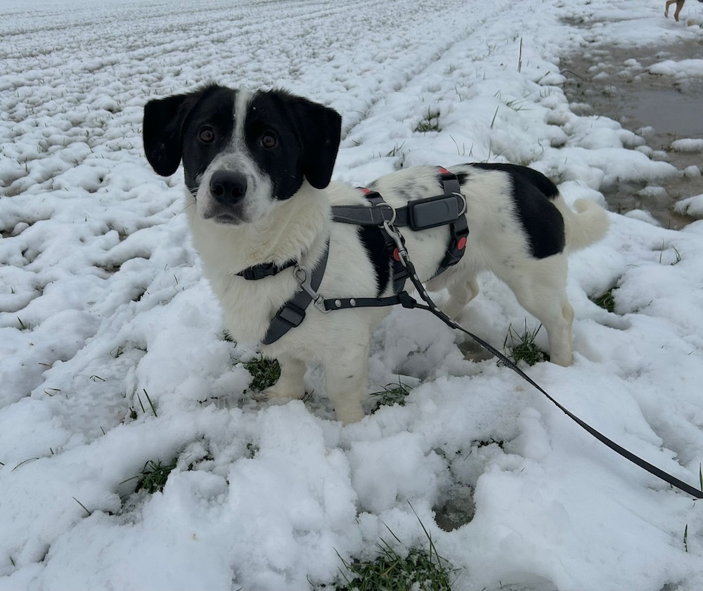 Spaziergänge macht der Kleine gut mit, er lässt sich problemlos das Geschirr anlegen und ist draußen offen und neugierig. Durch die Zeit im Shelter arbeiten wir aktuell noch an seiner Kondition und machen noch eher kleinere Runden. Hier hat er aber schon große Freude und ist fleißig am Schnuppern. Da er draußen sehr entspannt unterwegs ist, können wir ihn uns gut als Begleiter auf Urlauben, in Restaurants und auch zur Arbeit vorstellen. Andere Hunde werden allerdings schon mal angebellt, das wird mit ein wenig Training aber auch in den Griff zu bekommen sein.