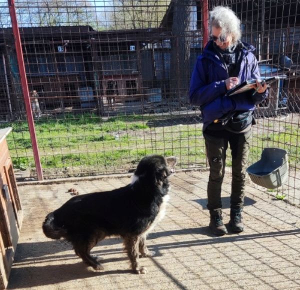 ALRIK kam direkt auf uns zu als wir den Kennel betraten. Er ließ sich sofort streicheln und forderte dies auch freundlich ein, wenn man aufhörte. Sehr menschenbezogen und nett. ALRIK läuft hinten beidseitig unrund.