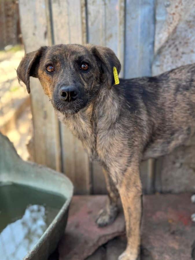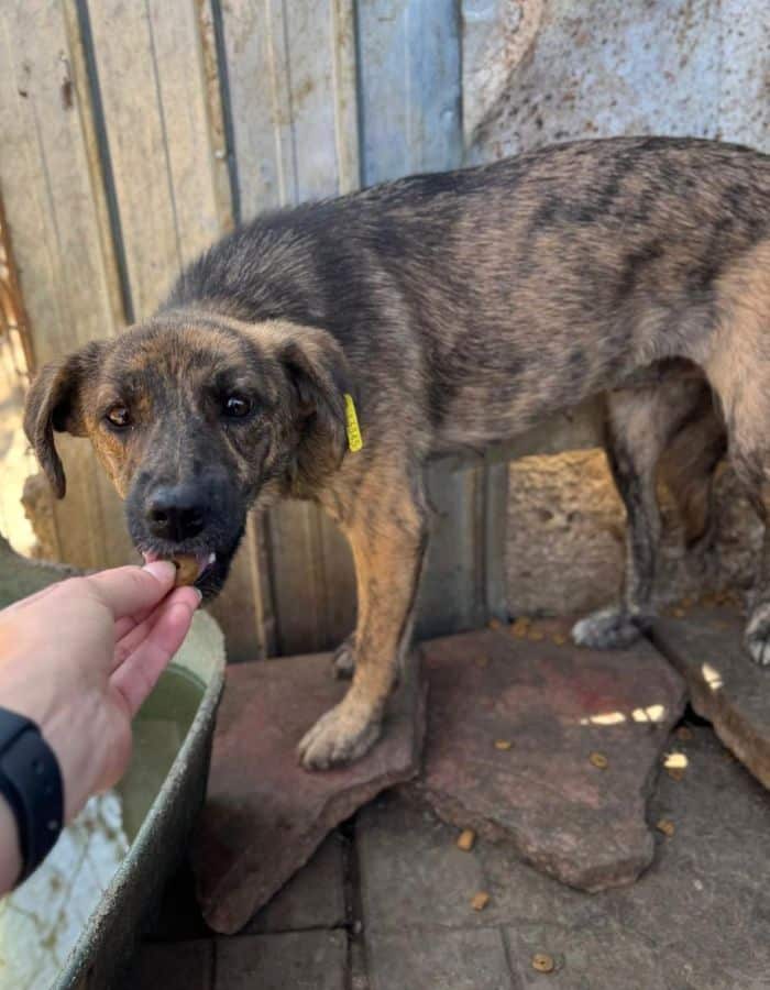 Die bezaubernde ALRUNA ist neu im Shelter und sitzt dort zusammen mit ihren beiden Welpen im Kennel. Sie zeigte sich uns gegenüber neugierig und ließ sich überall anfassen und streicheln, konnte dies aber noch nicht richtig genießen. Man merkte ihr an, dass sie den Kontakt mit uns Menschen einfach nicht gewöhnt ist. Leckerchen nimmt sie vorsichtig aus der Hand.