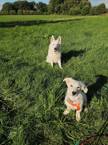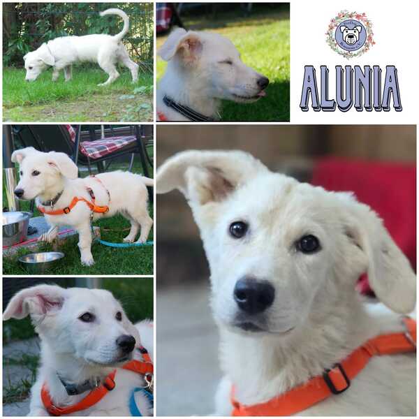 Bei all dem niedlichen Gebaren und dem um die Pfote wickeln, ist Alunia aber auch ein kleines selbstbewusstes Wesen, was ganz genau weiß, was es möchte und was nicht. Da sollte man von Anfang an gleich gut die Weichen stellen und sich nicht allzu sehr von ihr um die Pfote wickeln lassen. Hier bei uns hat sie das recht schnell begriffen und nimmt Anleitung schön an. Sie lebt hier in einem gemischten Rudel und hat ihren Platz. Chusu, ihr Reisegefährte, ist ihr die ersten Tage am liebsten gewesen; immer wieder zeigt sich, dass gemeinsames Ankommen eine Verbindung schafft. Inzwischen muss er ihre Gunst jedoch mit Katie teilen; denn in ihr hat Alunia eine liebe Schnäuzel- und Tobepartnerin gefunden.