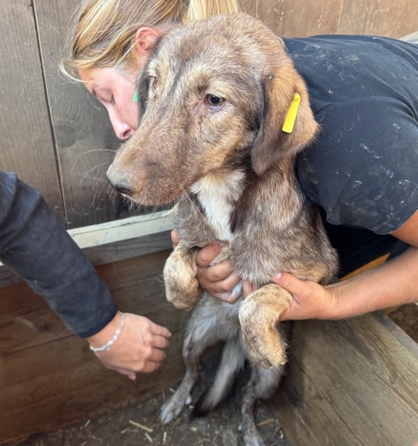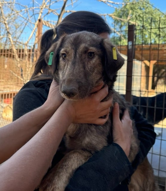 Diese freundliche und wunderschöne Hündin ist leider von ihrer Situation im shelter sehr gestresst und eingeschüchtert. Sie scheint schlecht an’s Futter zu kommen und hat einen schlechten Stand im Kennel. Uns gegenüber zeigte sie sich dauerhaft defensiv, sie ließ sich problemlos überall streicheln und hochnehmen, konnte es jedoch noch nicht genießen. In einer ruhigen Umgebung wird diese hübsche Maus sicher schnell auftauen und Vertrauen fassen können. Mit den anderen Hunden zeigte sie sich durchgehend verträglich und möchte Ärger aus dem Weg gehen. Wir hoffen sehr, dass sie schon bald die Chance erhält, dieser stressigen Situation entfliehen zu können.