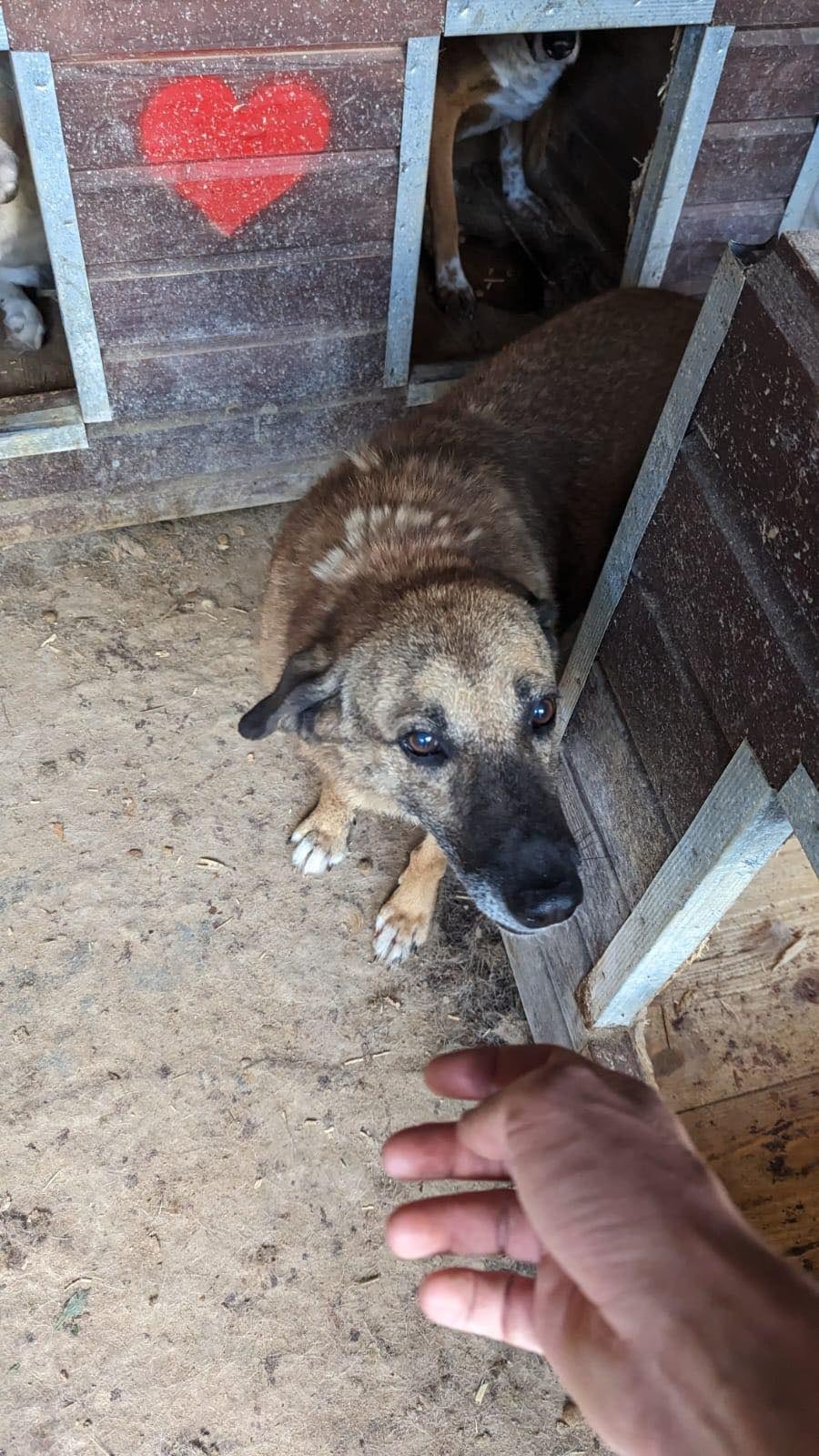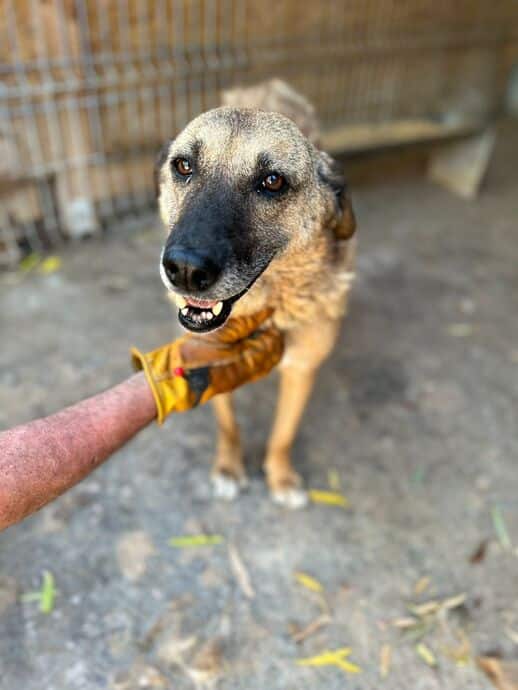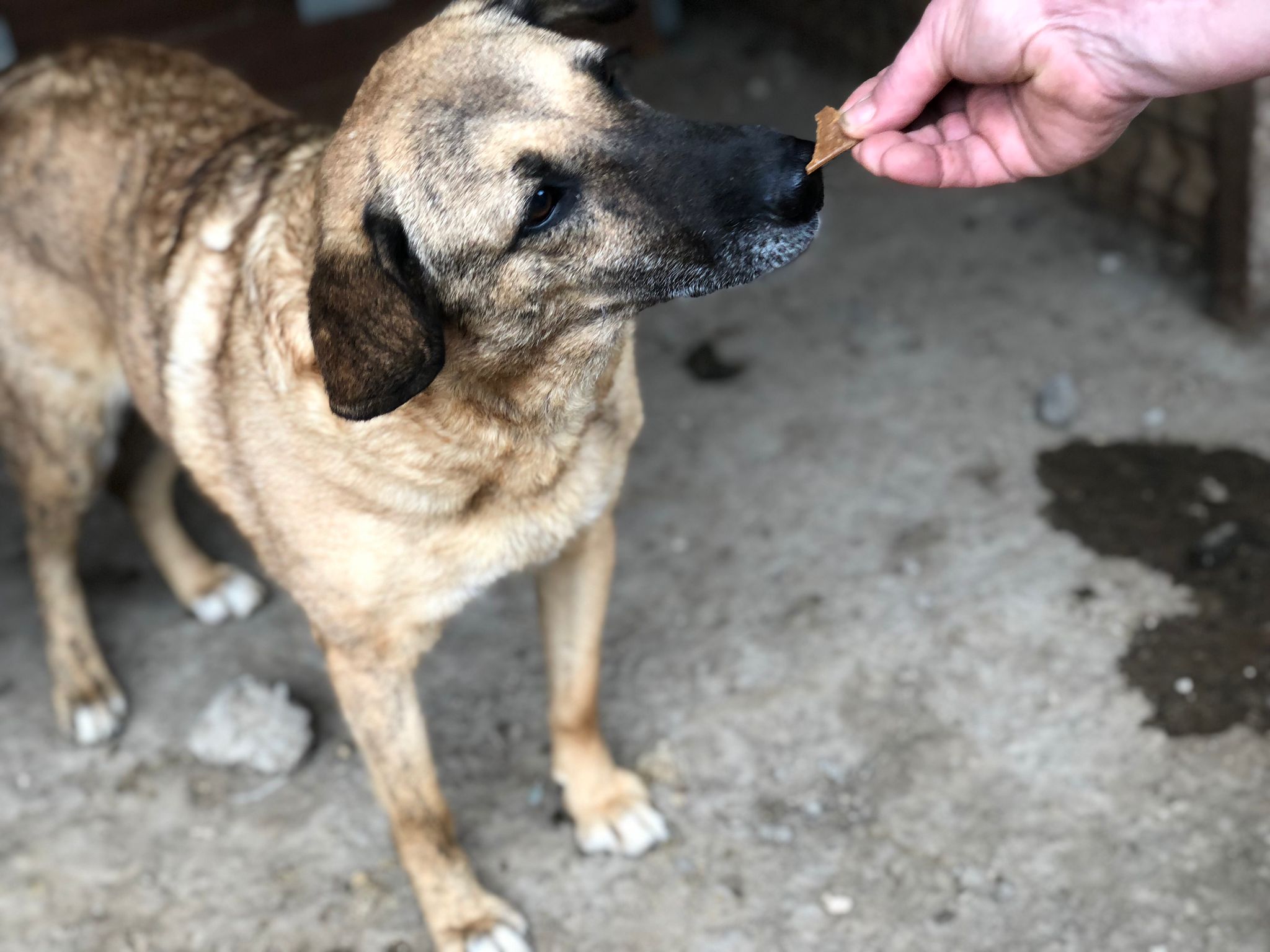 AMALI hat sich gut entwickelt! Sie frisst prima aus der Hand und lässt sich gut streicheln. Ihr fehlen schon einige Zähne und sie ist eine ruhige und entspannte Hündin