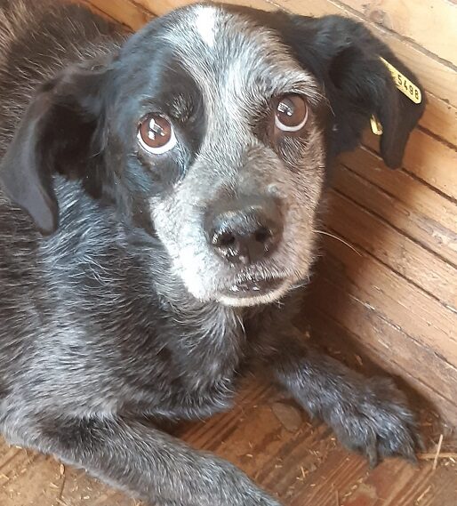 wurde mit 5 weiteren Hunden abgegeben freundlich unsicher, aber anfassbar verträglich