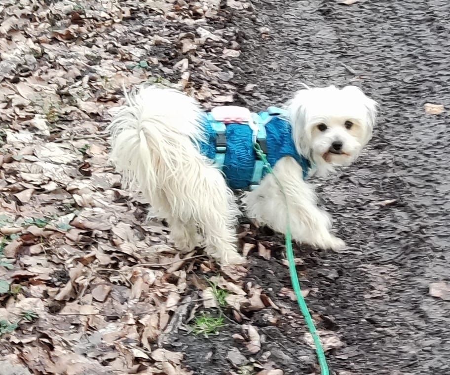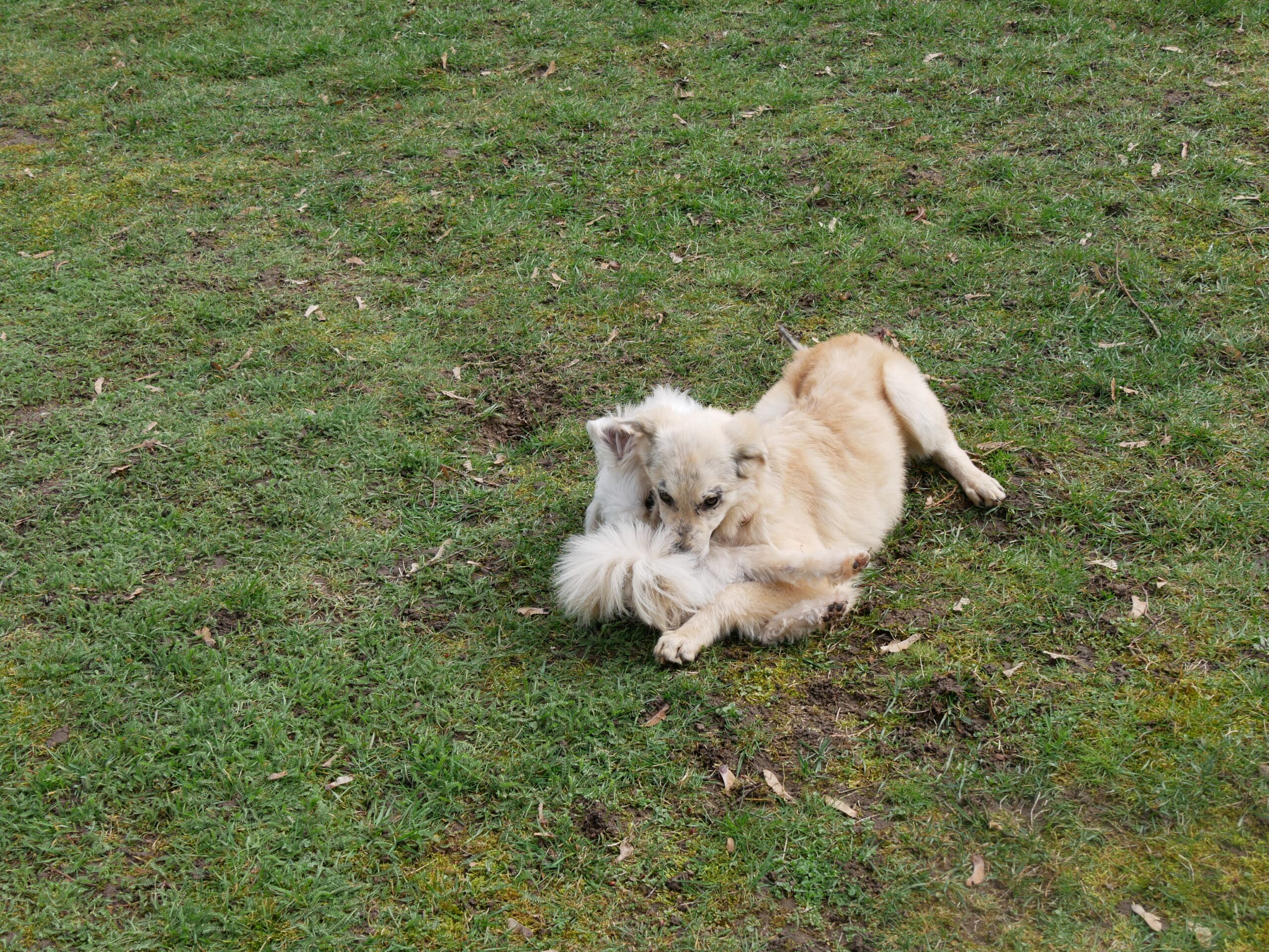 Sie mag gerne spazieren gehen, orientiert sich hier sowohl an den Hunden als auch am Pflegefrauchen. Ein Freilauf später kann somit sicherlich gut eingeübt werden. Fell- und Krallenpflege lässt sie gut zu; wenn das Fell etwas kürzer ist, erleichtert es sie gerade bei dem aktuellen Matschwetter.