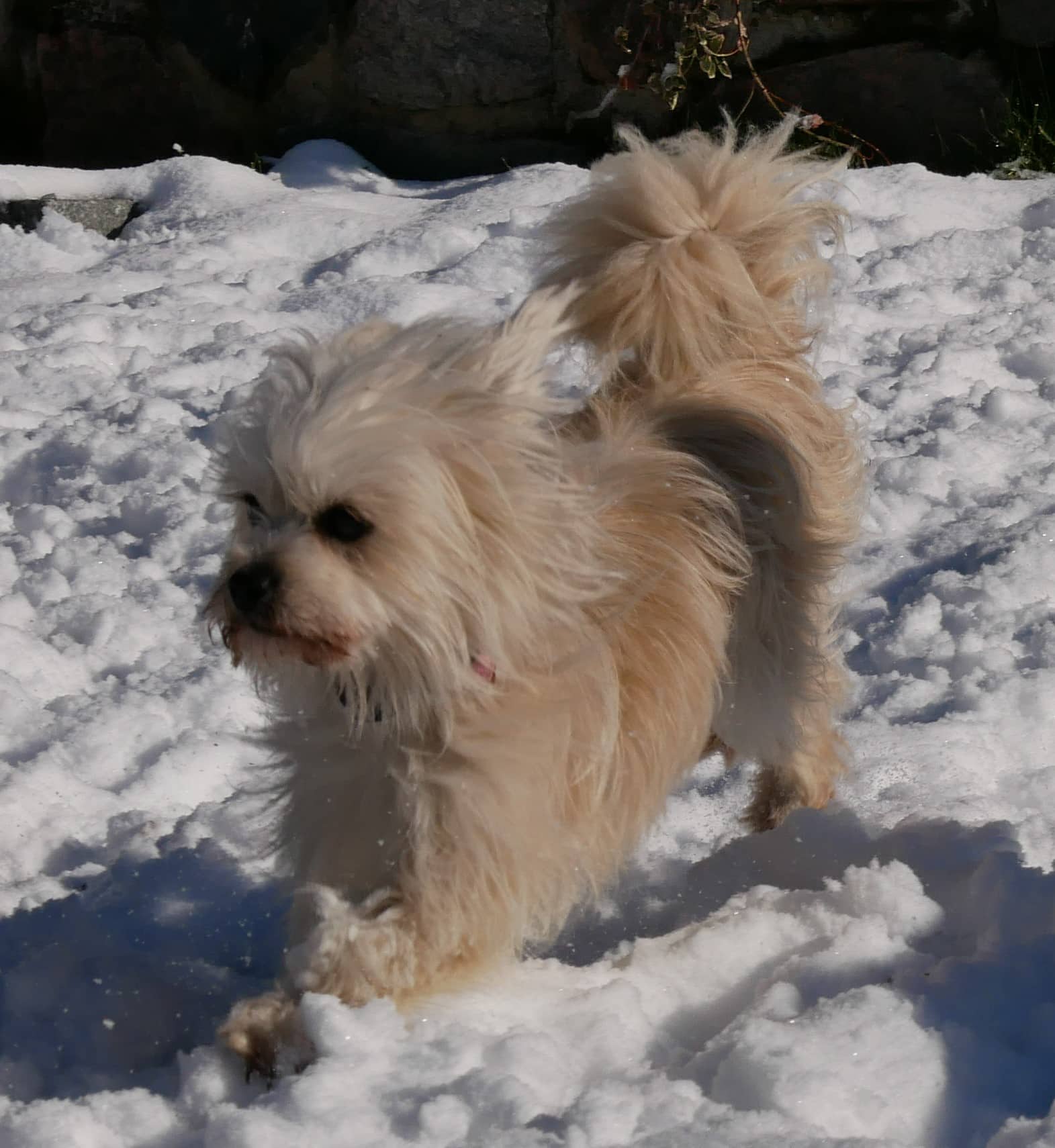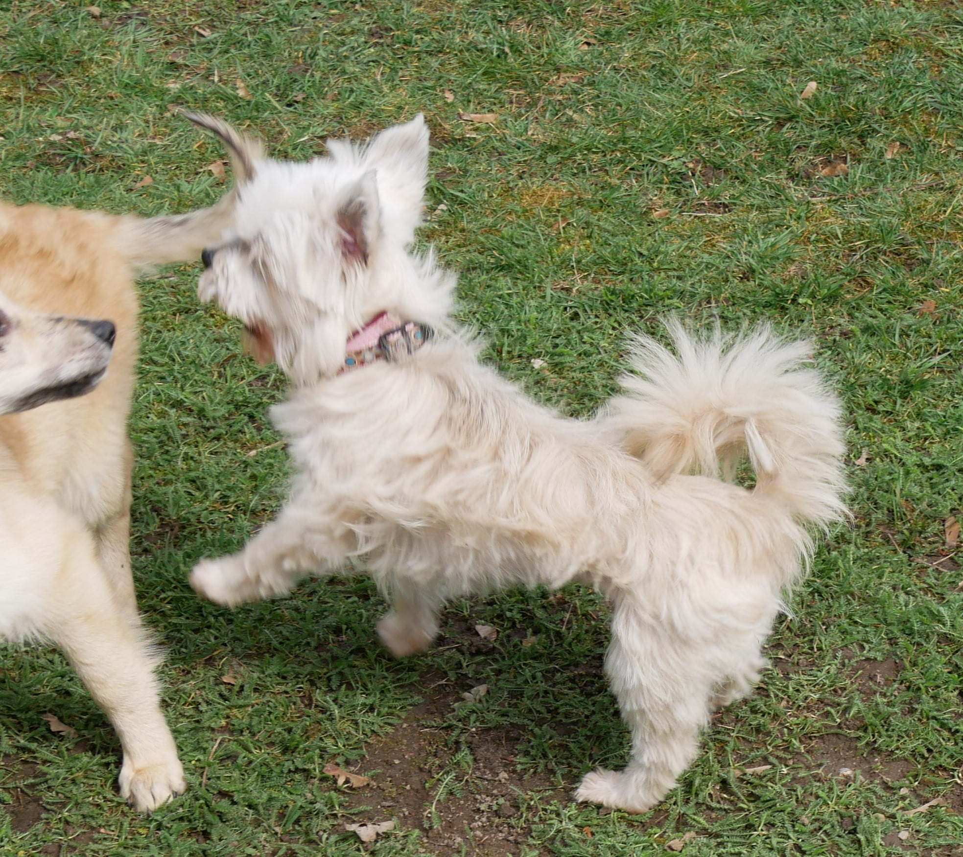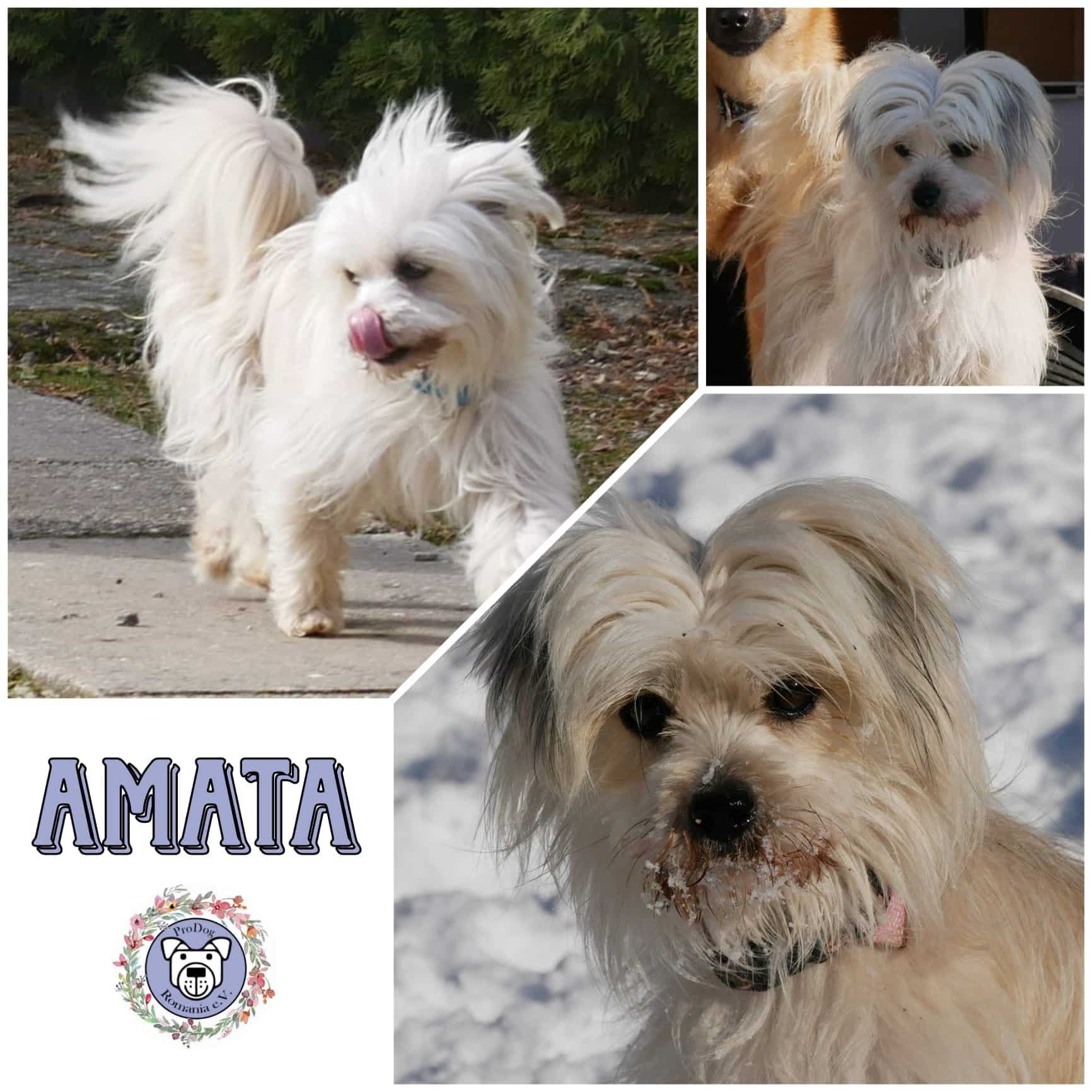 Amata würde sich sicherlich über einen hundischen Partner in ihrer Familie freuen. Und über einen Kuschelplatz im Arm ihres Menschen. Aber sie möchte auch ein echter Hund sein dürfen; mit rennen und toben auf den eigenen Beinen und mit schnüffeln im Wald und schmutzig machen beim Mäuschenbuddeln. Und dass ihr immer jemand den Pony schneidet und ihr bitte keine Schleife ins Fell bastelt!
