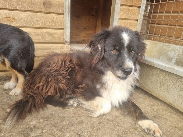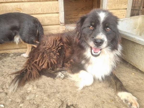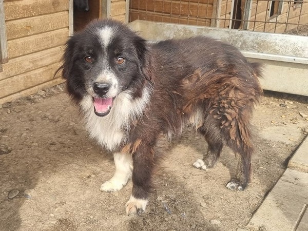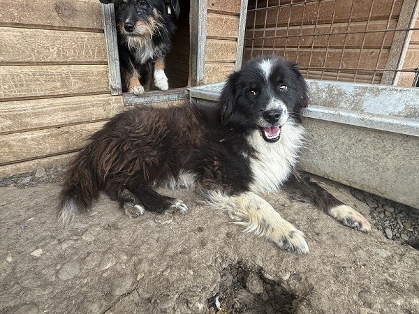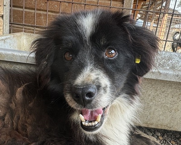 Der 35 – 40 cm kleine Bub sieht aus wie ein Border Collie Mix auf kurzen Beinen. Er hat einen ganz tollen Charakter. Bei unserem Besuch hielt er sich ruhig und friedlich zurück und beobachtete uns aufmerksam. Wir konnten uns ihm problemlos nähern und man sah die Freude in seinen hellbraunen, glänzenden Augen als er merkte, dass es tatsächlich nun um ihn ging. Er legte sich vertrauensvoll auf den Rücken und ließ sich überall kraulen, obwohl wir ihm völlig fremd waren. AMAURY lebt im Tierheim in einem sehr friedfertigen Rudel und das merkt man ihm auch an. Er wirkt trotz des Stresses sehr ausgeglichen und ist mit den anderen Hunden gut sozialisiert. Sein schwarzes, dichtes Fell welches in der Sonne bräunlich schimmert, ist leider teilweise schon sehr verfilzt. Im Tierheim hat auch kaum jemand Zeit sich um die Fellpflege der Hunde zu kümmern. AMAURY würde diese aber sicherlich in einem eigenen zu Hause sehr genießen. Er ist geschätzt 2021 geboren und ein durchweg toller und wunderschöner Bub.