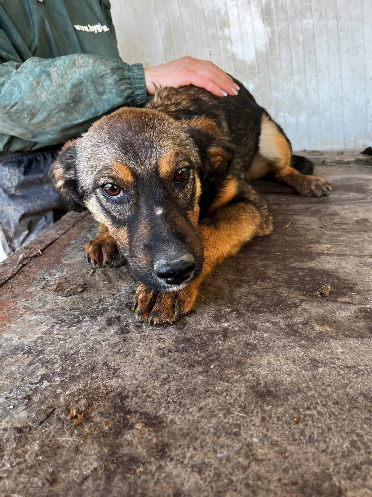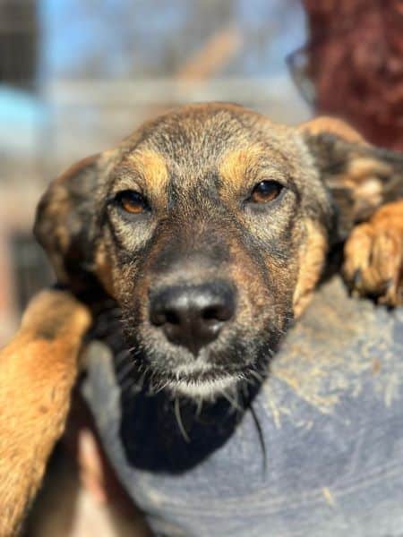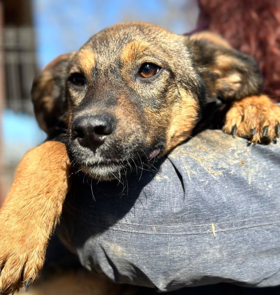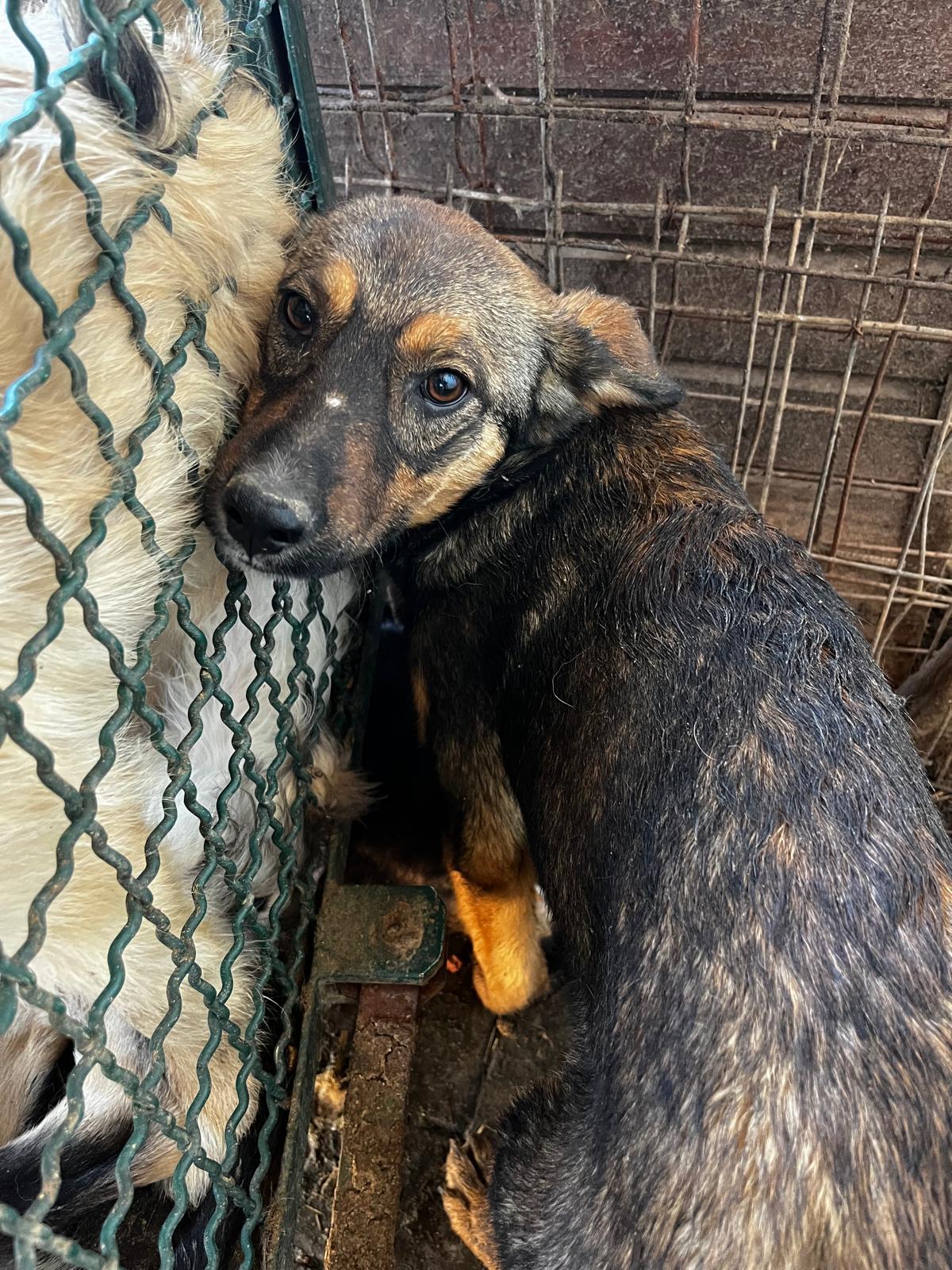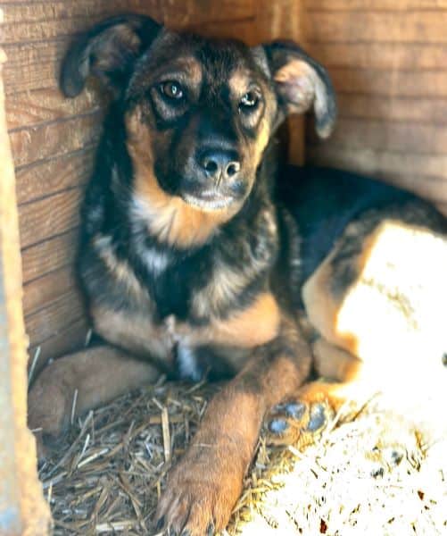 AMELY ist völlig überfordert zwischen den 27 anderen Hunden ihres Kennels und entwickelt sich daher leider zurückhaltend. Die Hütte ist ihr schützender Platz. Als wir sie auf das Dach der Hütte setzten und streichelten, suchte sie regelrecht Schutz in unseren Armen. Wir hoffen sehr, dass sie dieses stressige Leben bald hinter sich lassen darf!