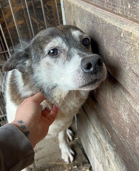 Er lässt sich in der Hütte anfassen, nach einer Zeit ließ er sich auch außerhalb streicheln. Er wünscht sich so sehr nochmal ein Zuhause indem er seine letzten Jahre genießen kann.