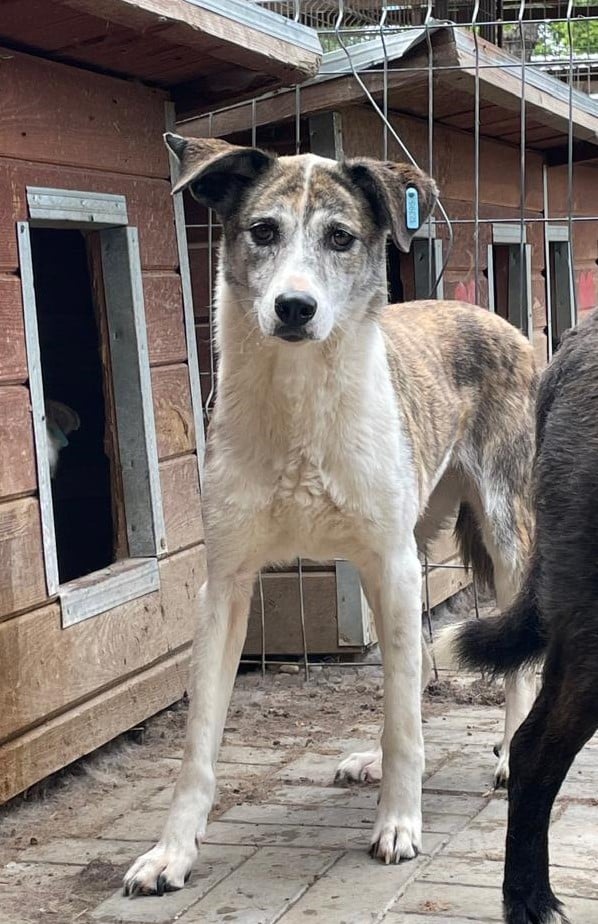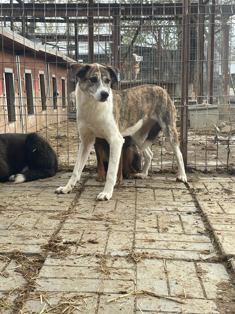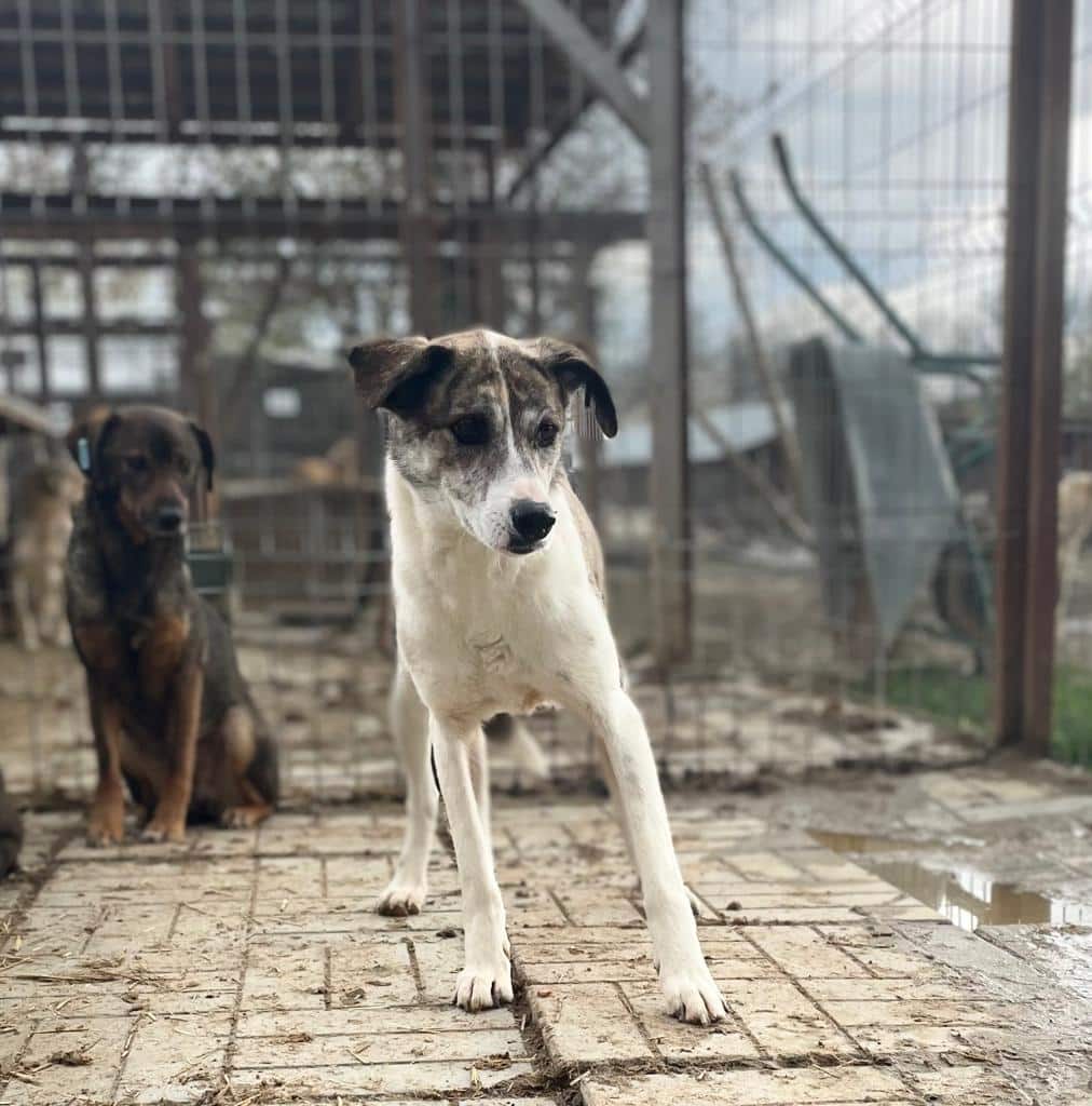 AMORY sitzt nur mit unsicheren Hunden in einem Kennel und ist die Mutigste von allen. Sie war sehr neugierig und nahm unsere Leckerlies vom Boden. Fünf Jahre wartet AMORY nun schon im Shelter. Wenn wir ihr näher kommen, dann weicht sie leider aus.
