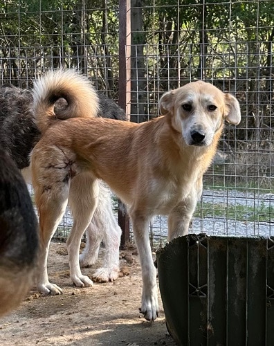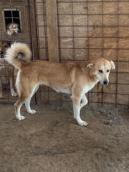 Update 09/24: Amy ist neugierig und beobachete uns, jedoch hat sie sich leider nicht näher an uns herangetraut. Wir haben das Gefühl, dass sie in der Hirachie recht weit unten ist, so dass sie sich nicht nach vorne trauen kann. Sie hat leider auch eine verheilte Wunde am Oberschenkel. Amy sollte zu erfahrene, geduldigen und entspannten Menschen. Sie wird sicher nach einiger Zeit aufblühen und eine ruhige, tolle Hündin werden.