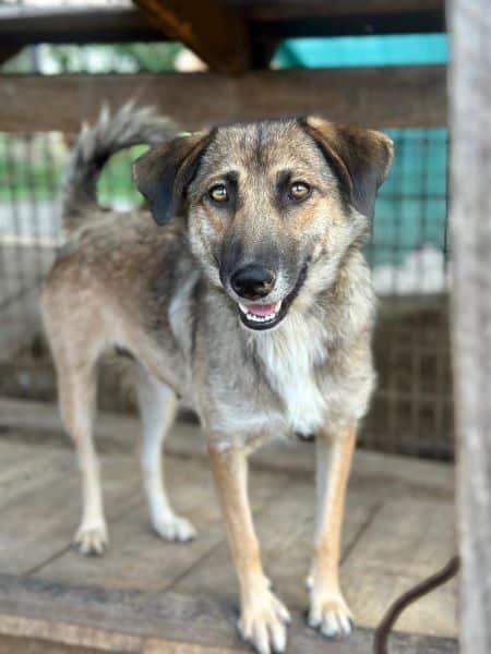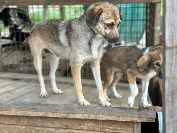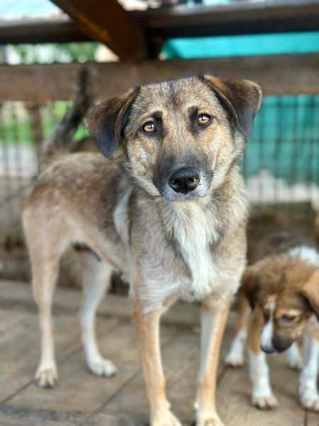 Sie ist nicht nur sehr verträglich, sondern auch absolut zutraulich. Wird gerne angefasst und Leckerchen sind natürlich auch willkommen. Hoffentlich muss diese Mama nicht nur zu sehen, wie ihre tollen Söhne ein Zuhause finden, sondern darf auch gleich mit. Träumen darf man ja, besonders bei so einer Hundemama.