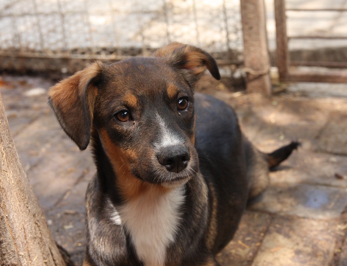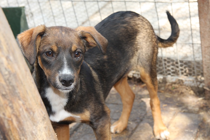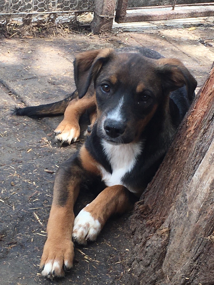 ANDO wurde als Welpe bereits gebissen und musste einige Zeit zur Behandlung in einer kleinen Box sitzen. Nun ist er zurück beri seinen Geschwistern im Außenkennel und man sieht ihm an, dass er schon müde vom stressigen Shelterleben ist.