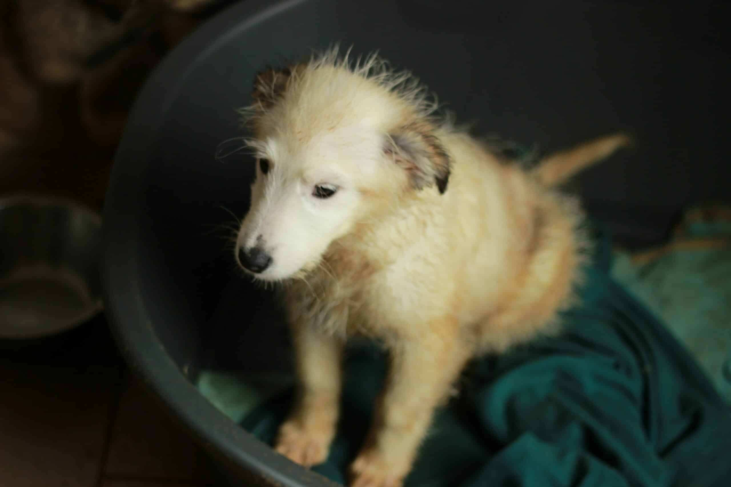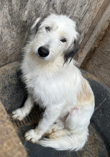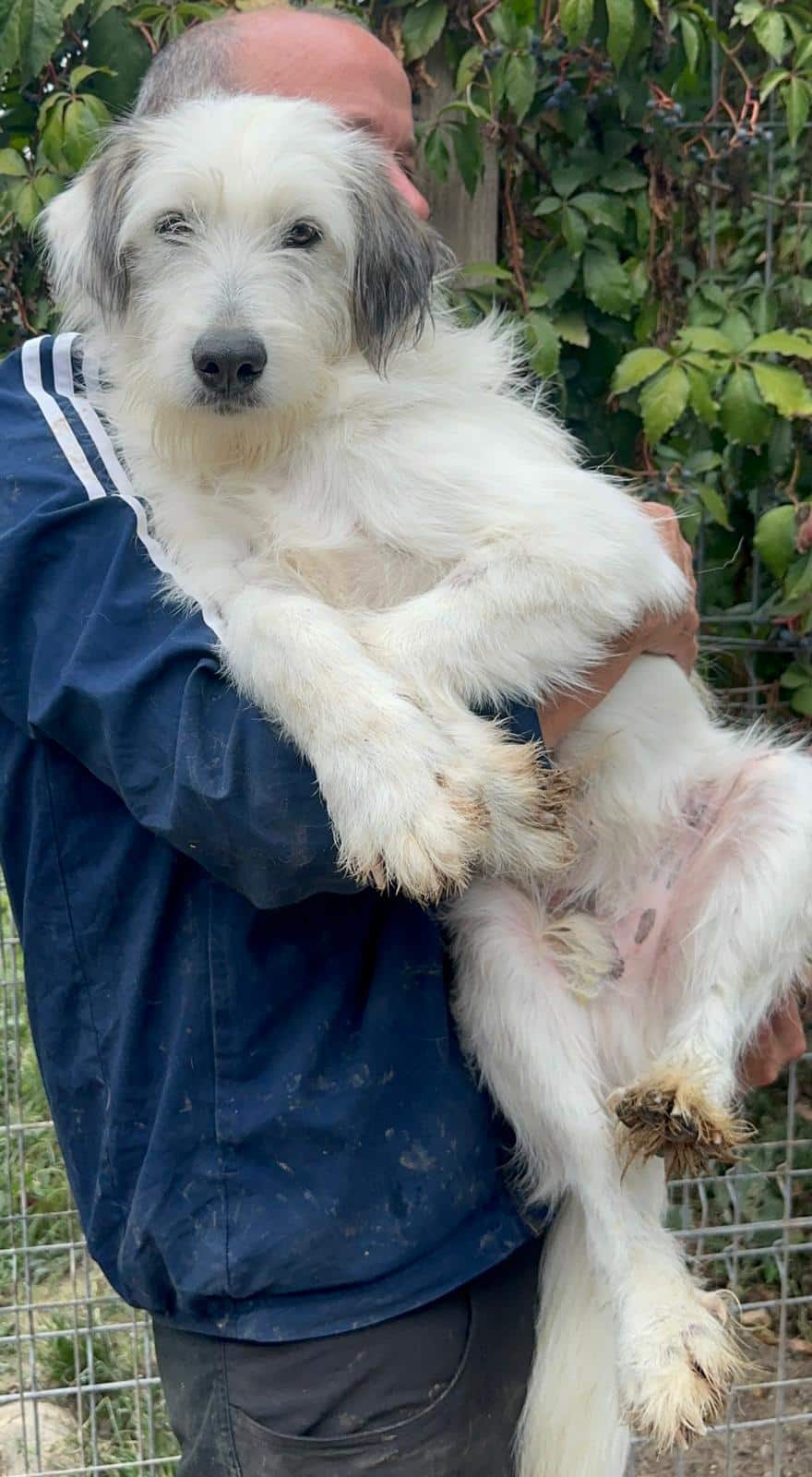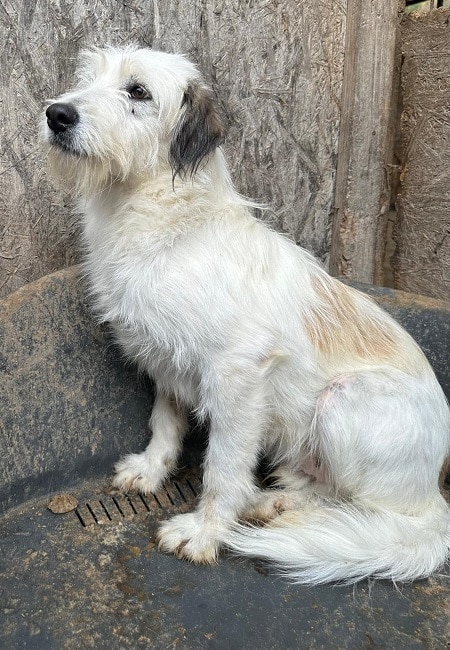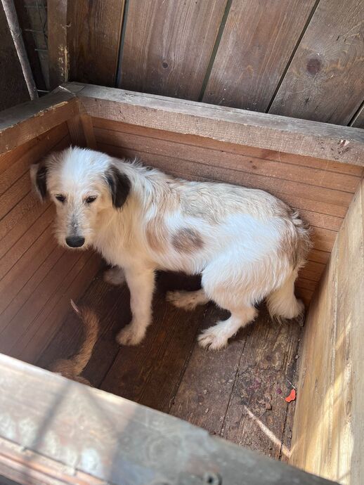 Update 09/24: Eine wahre Schönheit, die sich hier während unseres Besuchs in der Hütte versteckte. Andy, der kleine Kerl der noch nie etwas in seinem Leben außerhalb des Shelters kennenlernen dürfte und dementsprechend aus seiner Komfortzone geholt werden musste. Wir konnten Andy streicheln und auf den Arm nehmen, noch ein wenig skeptisch ist er natürlich. Aber er hat das so prima mitgemacht. Selbst als ein anderer Hund ihn während des Streichens bedrängte, blieb er ruhig. Andy benötigt eine geduldige Familie, die bereits Erfahrung mit unsicheren Hunden hat und die ihm gern die neue Welt in entspannten Etappen zeigen möchte. Wir hoffen sehr, dass seine positive Entwicklung ihn in ein zu Hause verhilft.
