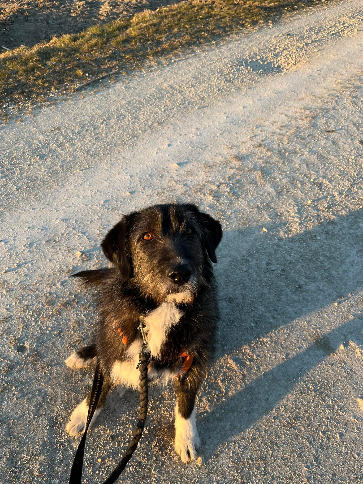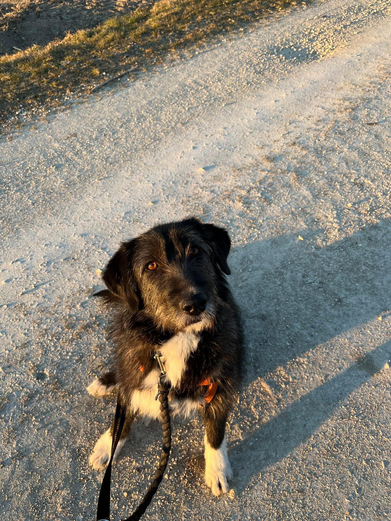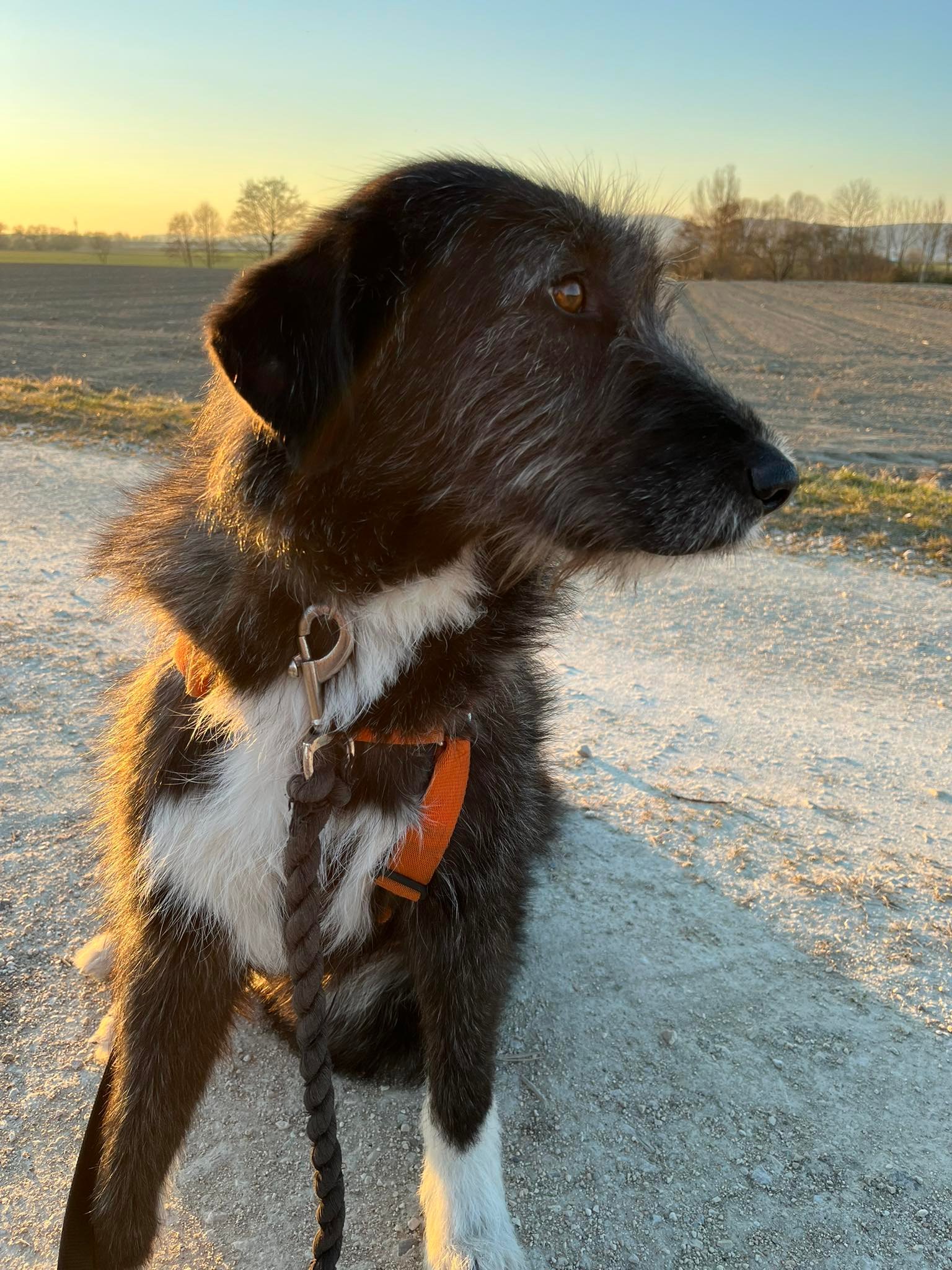 Sie geht gerne Spazieren, dabei geht sie vorbildlich an der Leine und ist auch bei Hundebegegnungen entspannt und freundlich. Bei Joggern, Radfahrern und fremden Menschen kann es noch vorkommen, dass sie aus Angst leicht versteinert. Dies legt sich sofort wieder, hierbei sind wir aber gut am Trainieren und man sieht den täglichen Fortschritt bereits.