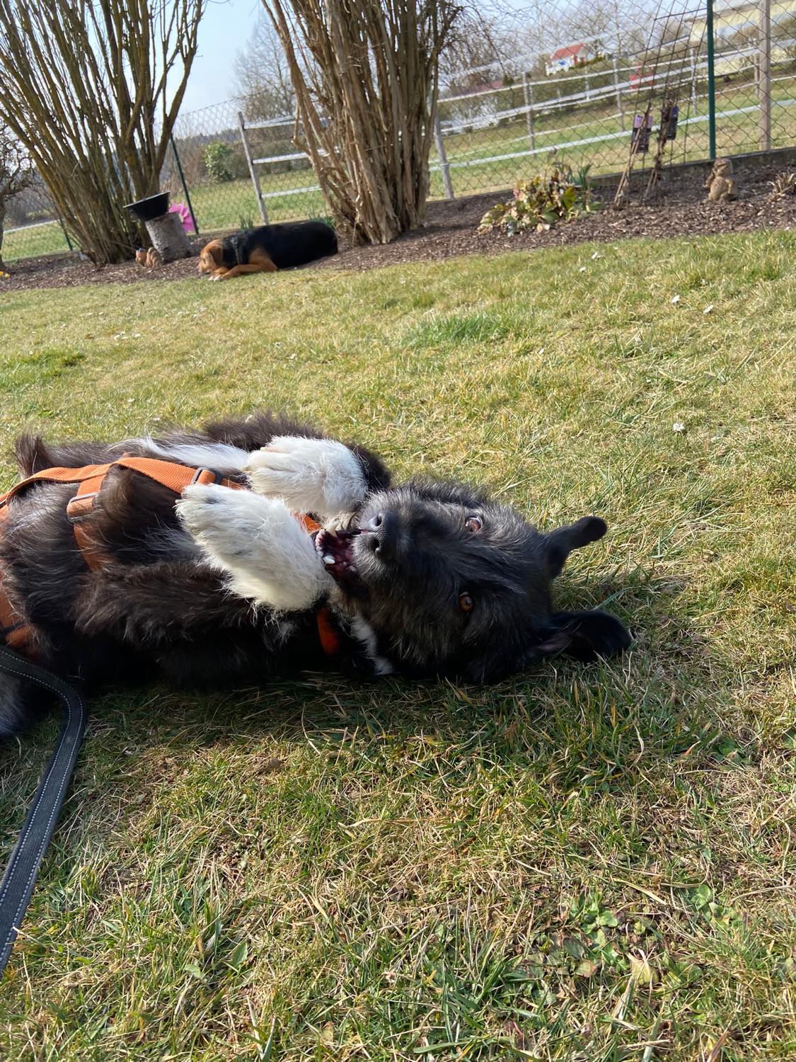 Die Hündin zeigt sich bei uns vom ersten Tag an als sehr menschenbezogen, verschmust und verträglich.