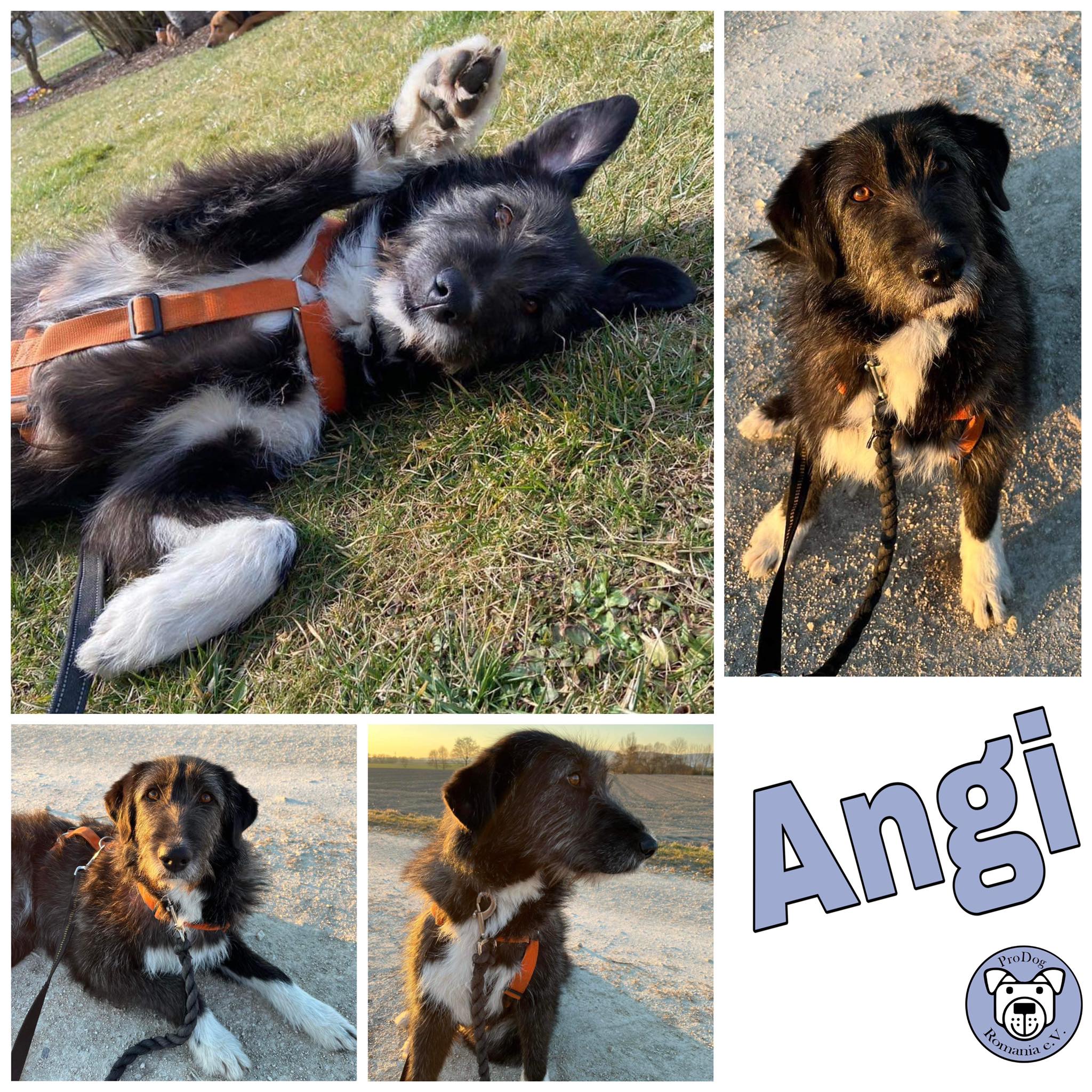 Angi ist eine sehr verschmuste, freundliche, unkomplizierte und anhängliche Hündin im besten Alter, wobei sie nie aufdringlich wird. Sie liebt es bei Menschen zu sein, lässt sich gerne streicheln und fordert dies auch gerne mit Pfotenstupsen ein. Hierbei wickelt sie mit ihrem Blick und ihrer warmherzigen offenen Art die Menschen um den Finger. Fremde Besucher werden noch vorsichtig begrüßt, wohingegen sie Bekannte liebevoll und herzlich begrüßt. Angi hat generell einen wundervollen, ausgeglichenen, liebevoll warmherzigen Charakter.