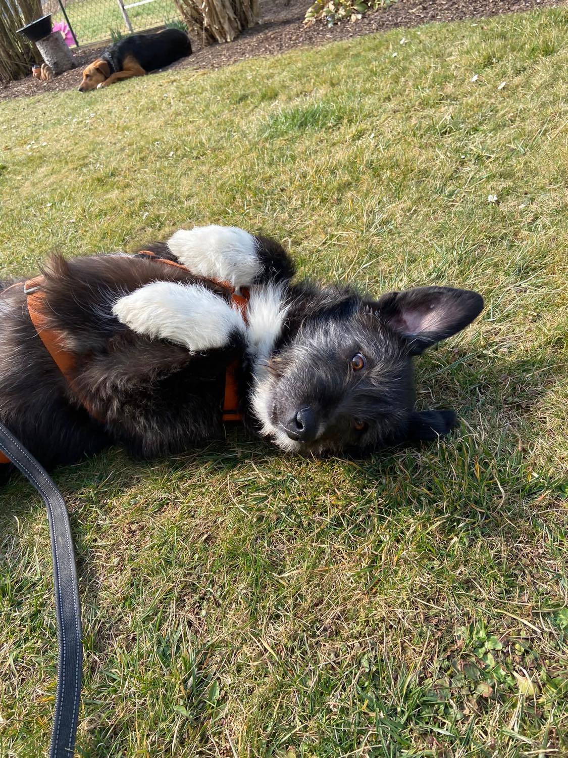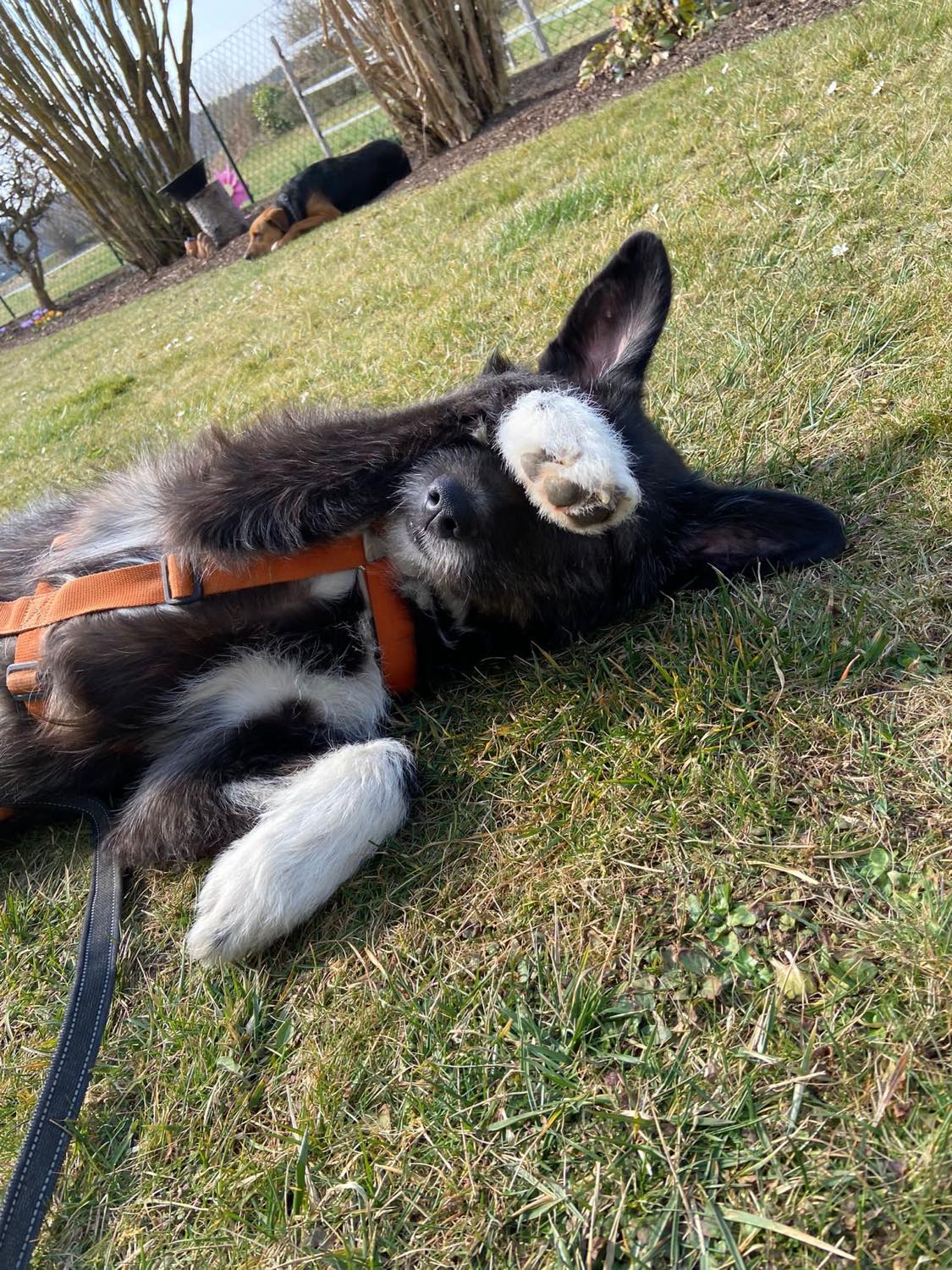 Auch spielt sie gerne im Garten mit unserer Ersthündin und mit uns Menschen. Sie ist natürlich stubenrein. Auch an den Grundkommandos arbeiten wir gerade, Sitz und Platz klappen schon einigermaßen. Autofahren funktioniert schon einigermaßen gut sowie das stundenweise Alleine bleiben.
