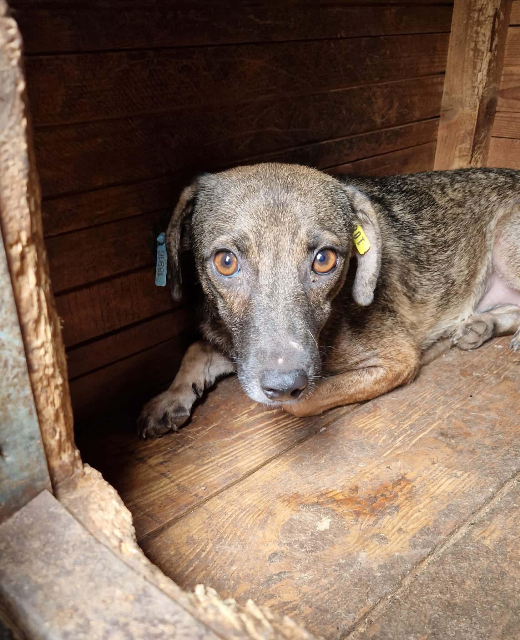 Diese arme Hündin haben wir im VetKennel zwischen vielen Welpen gefunden. Leider ist sie etwas scheu und wich uns aus. Sie zeigte ein halbherziges Abschnappverhalten, was man gut in den Griff kriegen kann. Es zeigt aktuell lediglich ihre Angst, weil sie nicht weiß, was wir von ihr wollen. Versteht sie, dass wir es gut mit ihr meinen, wird sie zutraulicher werden.