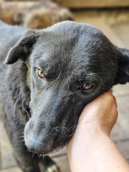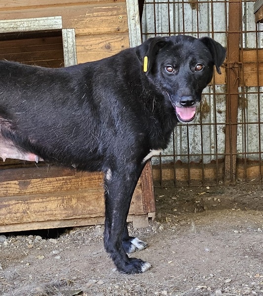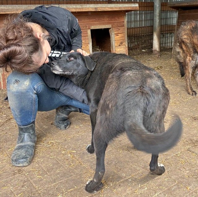 ANILA ist eine ganz entzückende und rührende Hündin, die noch neu im Shelter ist. Anfangs hielt sie sich im Hintergrund und nahm nur vorsichtig die Leckerlie aus der Hand, doch als sie merkte, dass wir es gut mit ihr meinen und uns Zeit für sie nehmen, taute ANILA zusehends auf: behutsam ließ sie sich streicheln, genoss diese seltene Zuwendung und fragte sogar sanft mit der Pfote nach mehr Aufmerksamkeit. ANILA blieb dann immer in unserer Nähe, ohne dabei aufdringlich zu sein. In ihrem gemischten Rudel wirkt sie verträglich. Wir hoffen sehr, dass sie unter den vielen schwarzen Hunden nicht untergeht, sondern bald von ihren Menschen gesehen wird und ein kleines Wunder für ANILA geschieht.